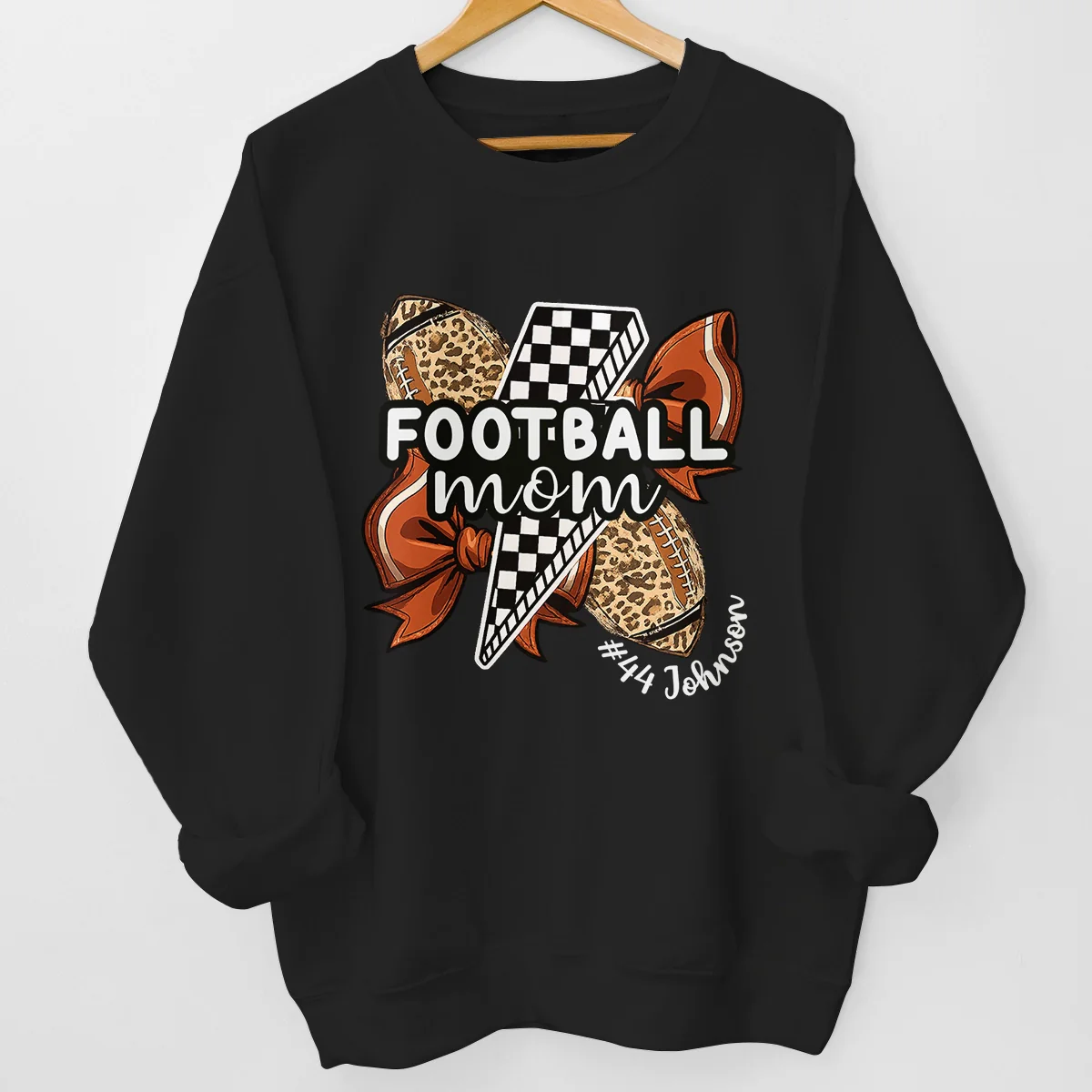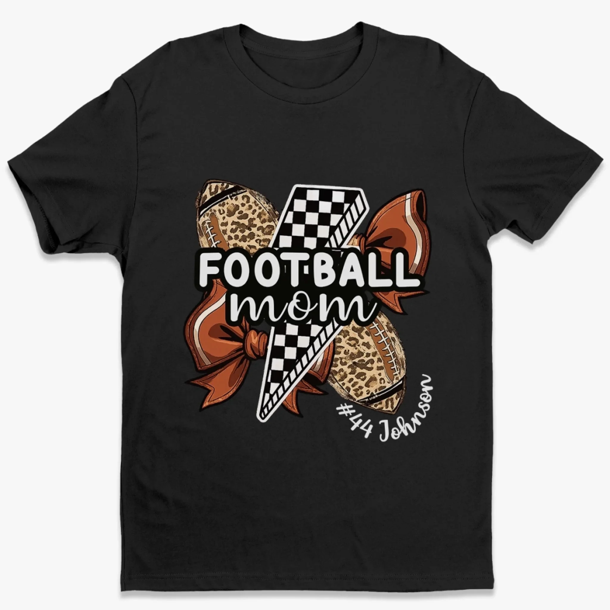 Custom Senior Football Mom T-shirt, Hoodie - Personalized Birthday Football Gifts For Mom, Football Lovers, NFL Fans, Sport Lovers - Football Mama With Leopard Coquette Bow