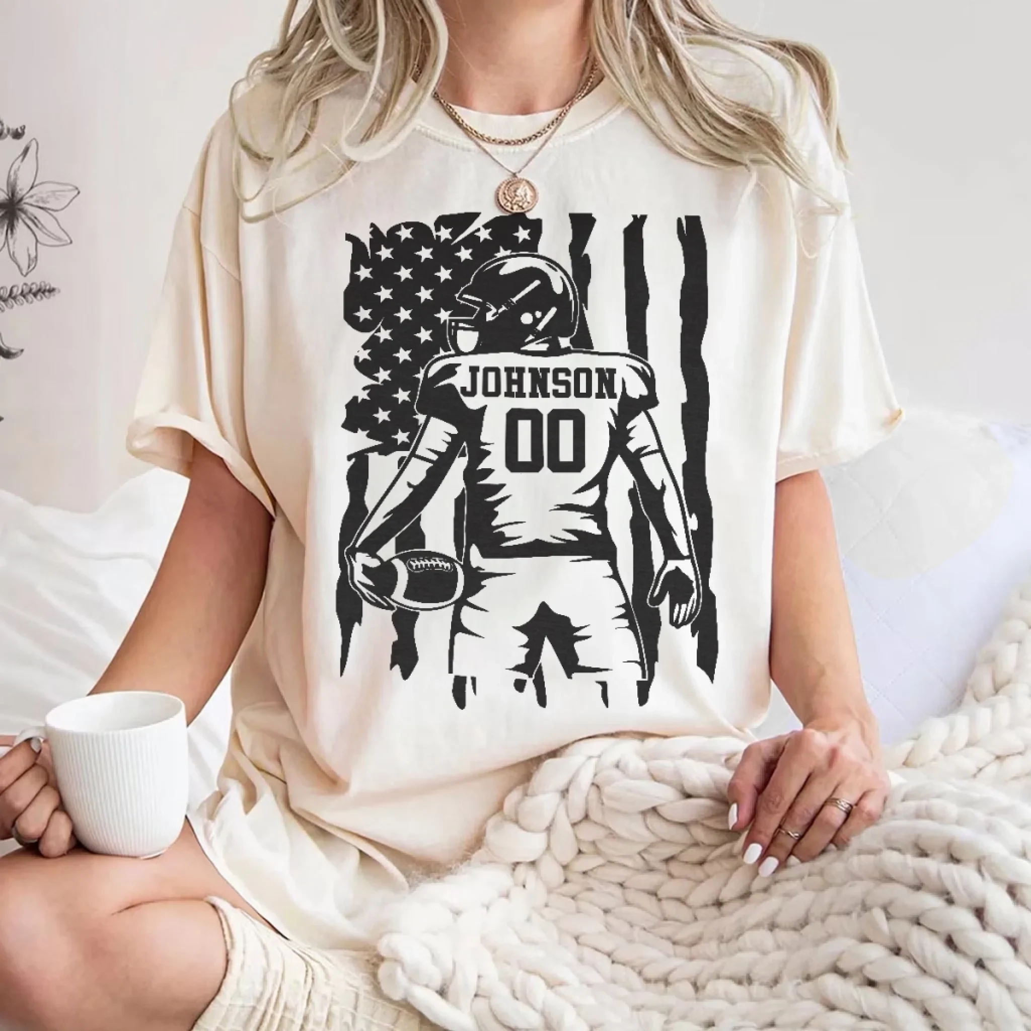 Custom Football Player T-shirt, Hoodie - Personalized Birthday Football Gifts For American Football Players, Football Lovers, NFL Fans - American Football With Flag