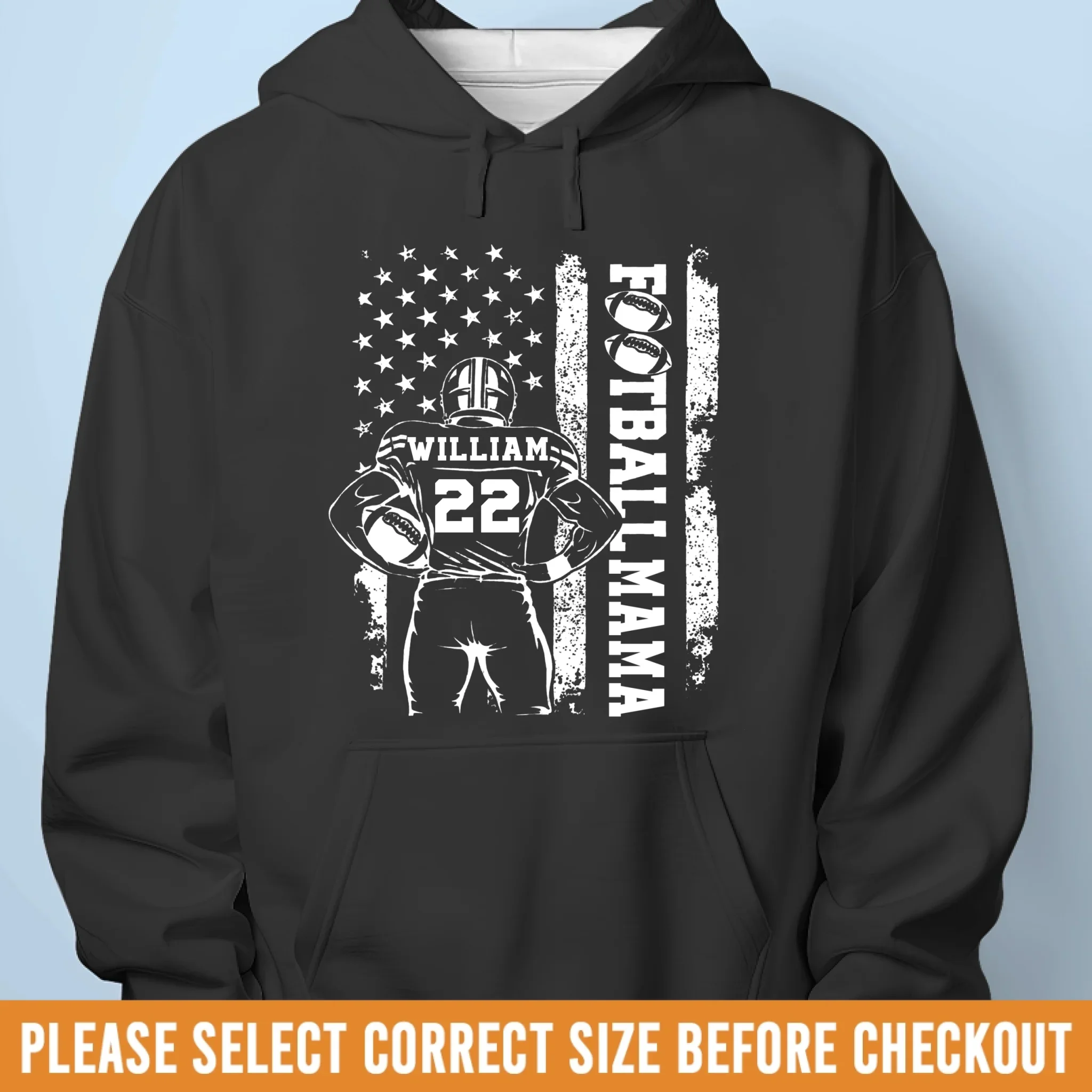Custom Senior Football Mom T-shirt, Hoodie - Personalized Birthday Football Gifts For Mom, Football Lovers, NFL Fans, Sport Lovers - Football Mama With Flag