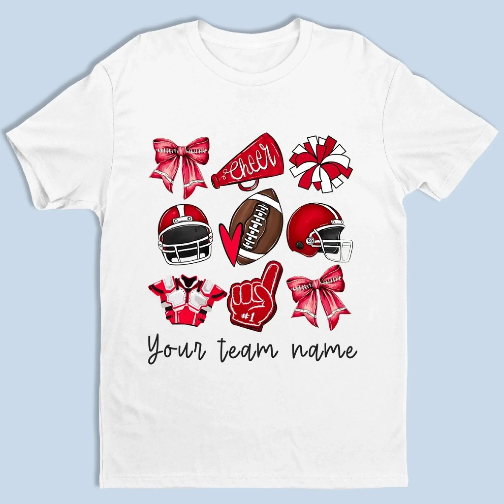 Custom Football Cheer Mom T-shirt, Hoodie - Personalized Birthday Football Gifts For American Football Players, Cheerleader, Football Lovers, Football Mom, Football Grandparent, - American Football Coquette Bow Team