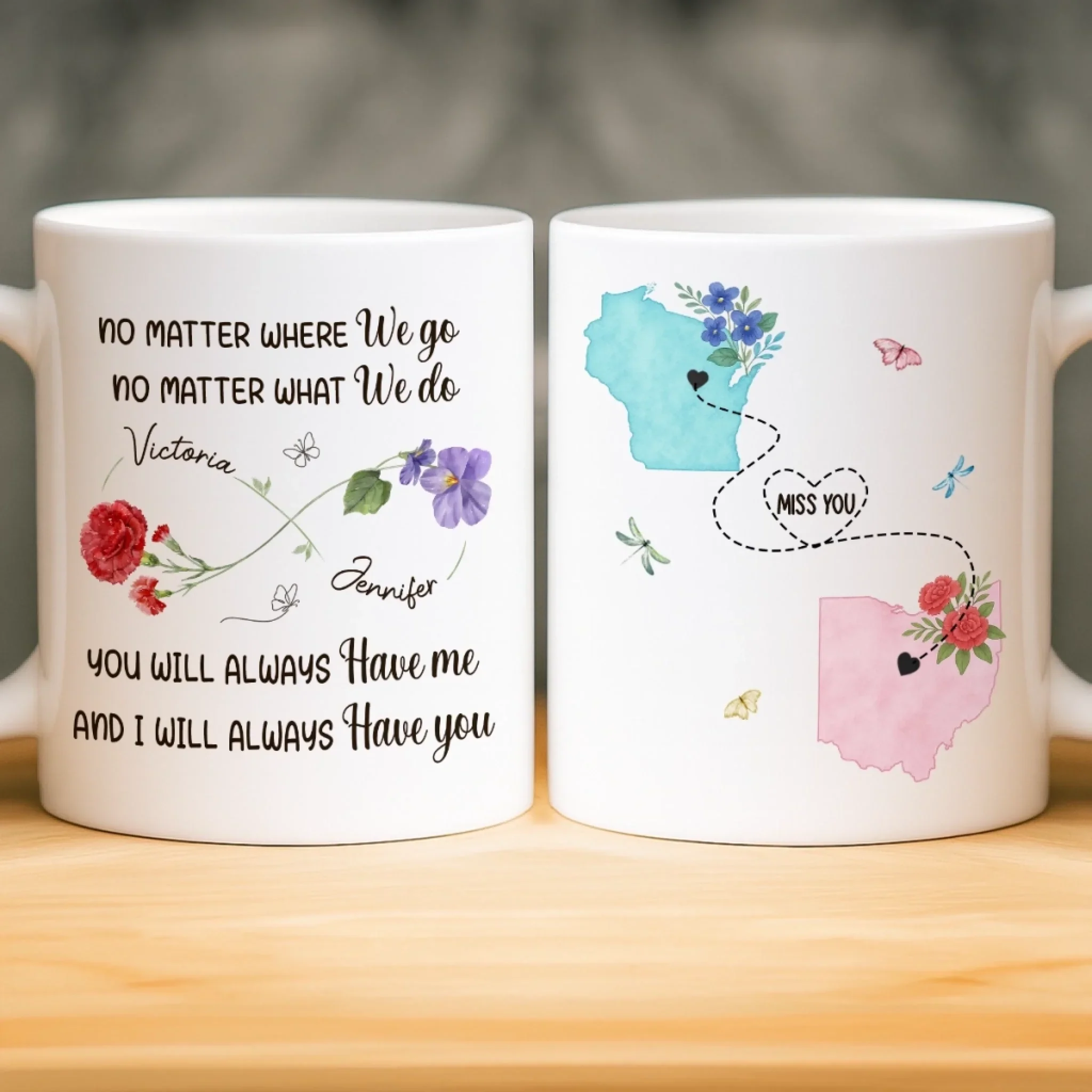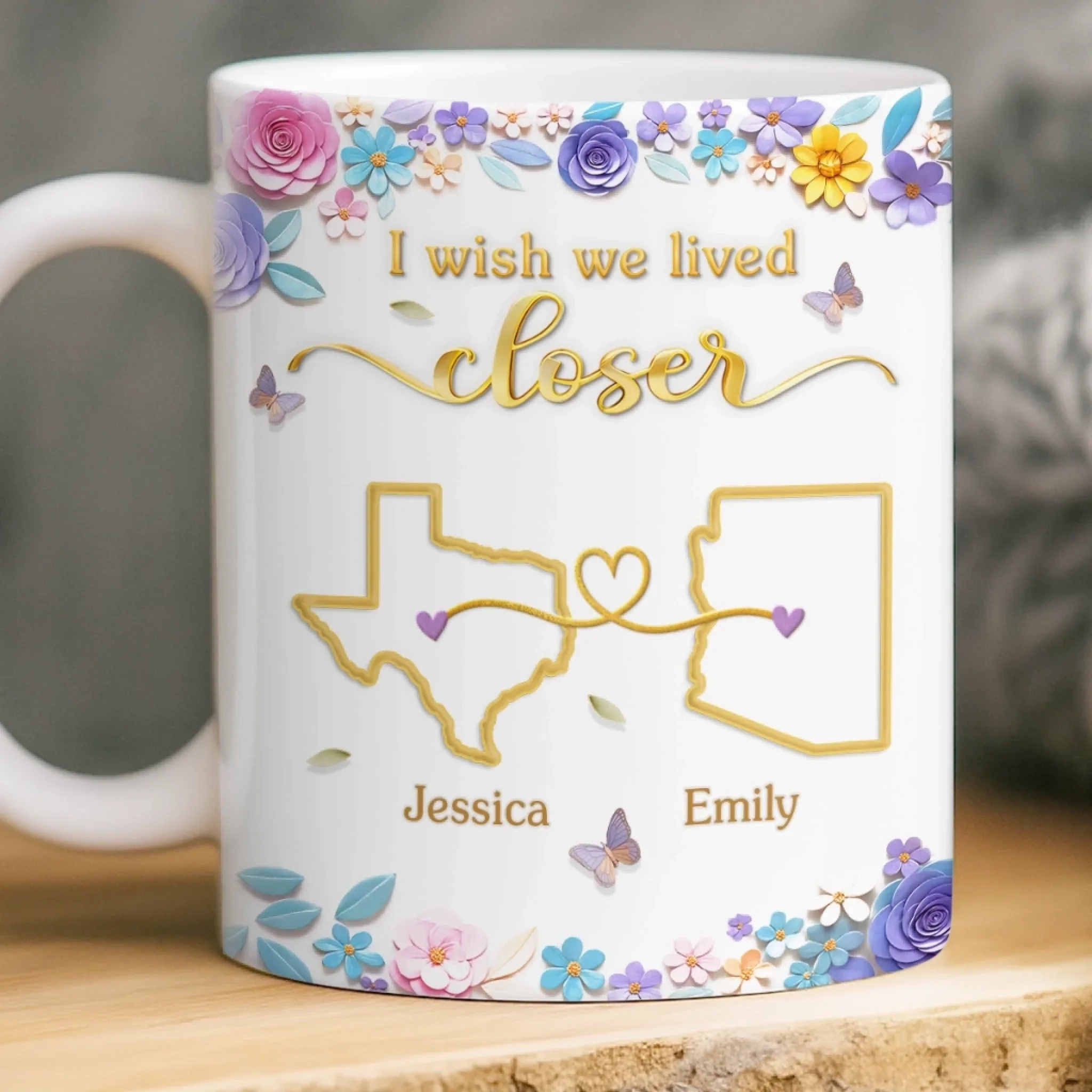 Custom Long Distance Mug - Personalized Best Friend Birthday Gifts For Women, Besties, Sisters, BFF - Close Where It Counts
