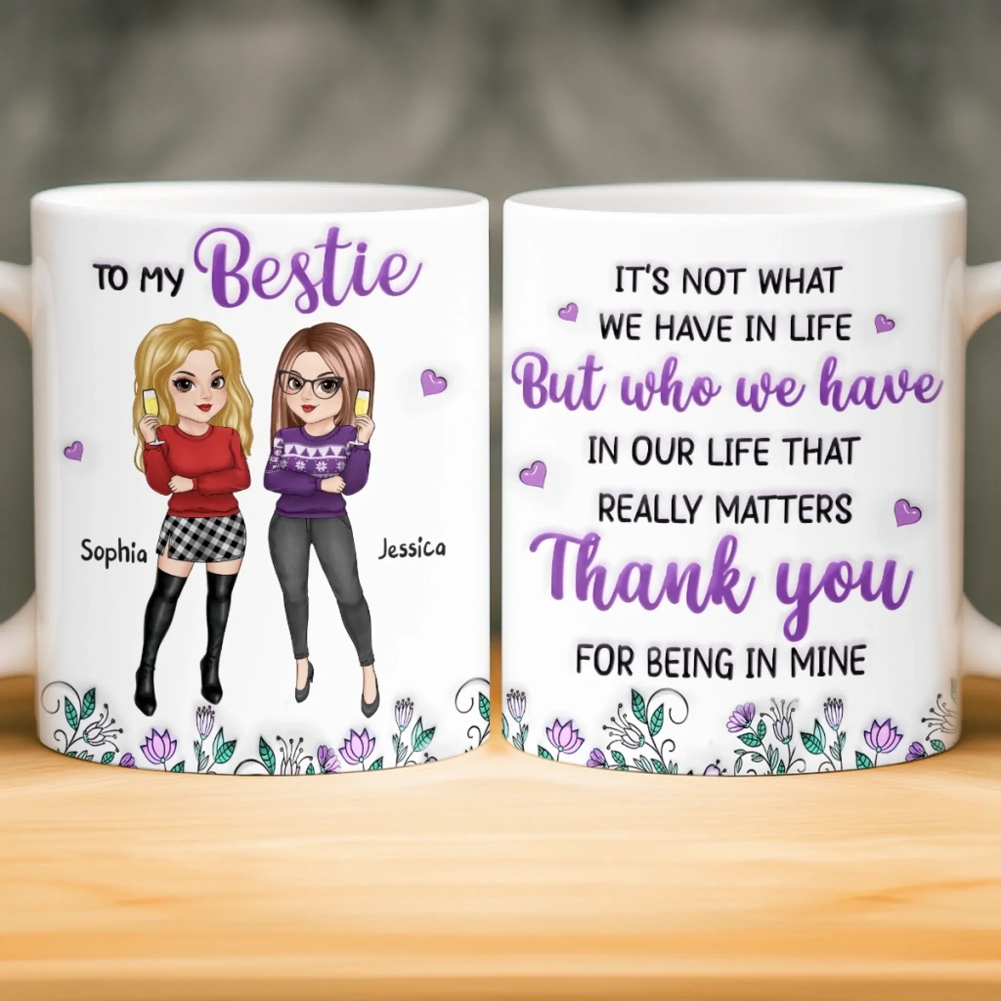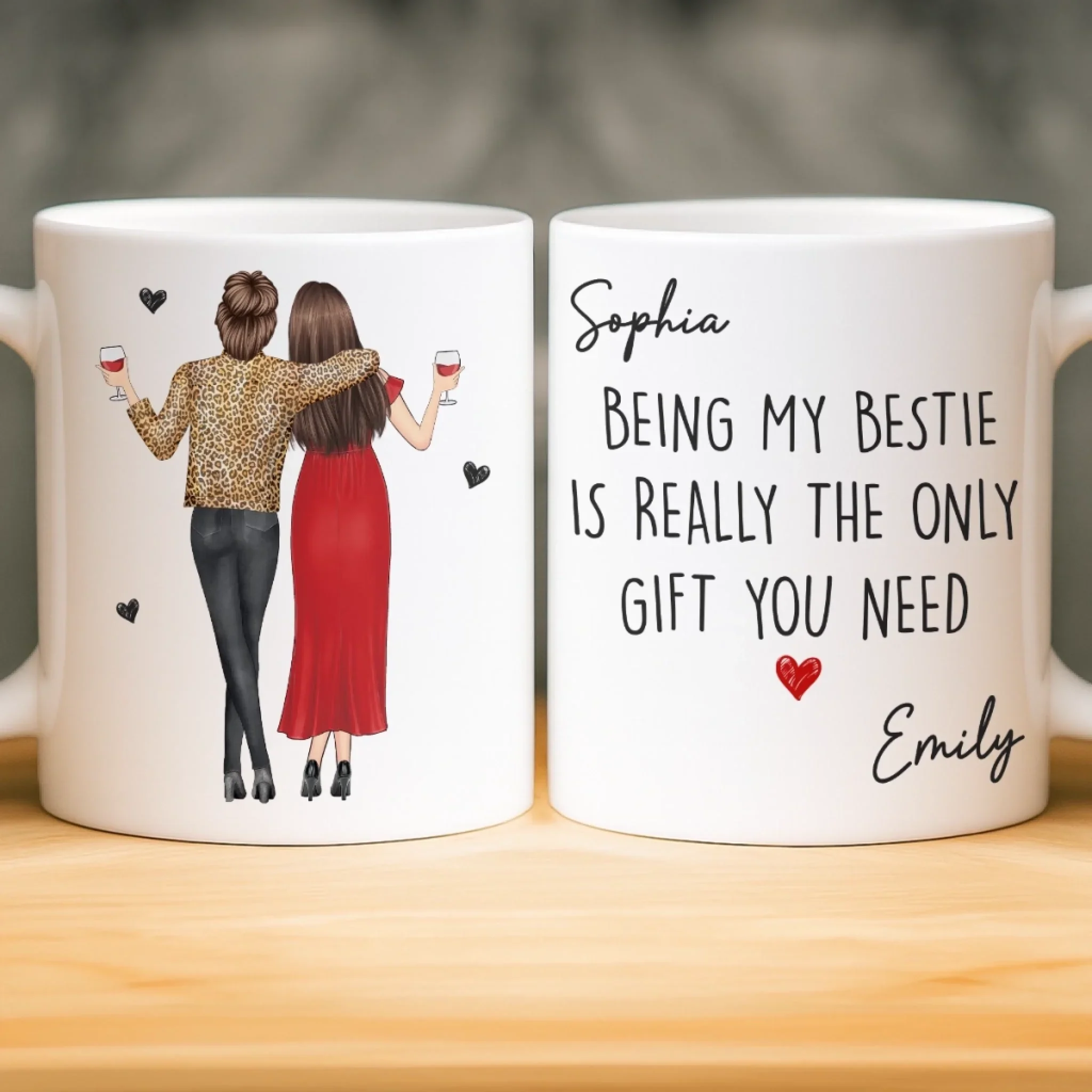 Custom Mug - Personalized Best Friend Birthday Gifts For Women, Besties, Sisters, BFF - Hearts That Just Get It