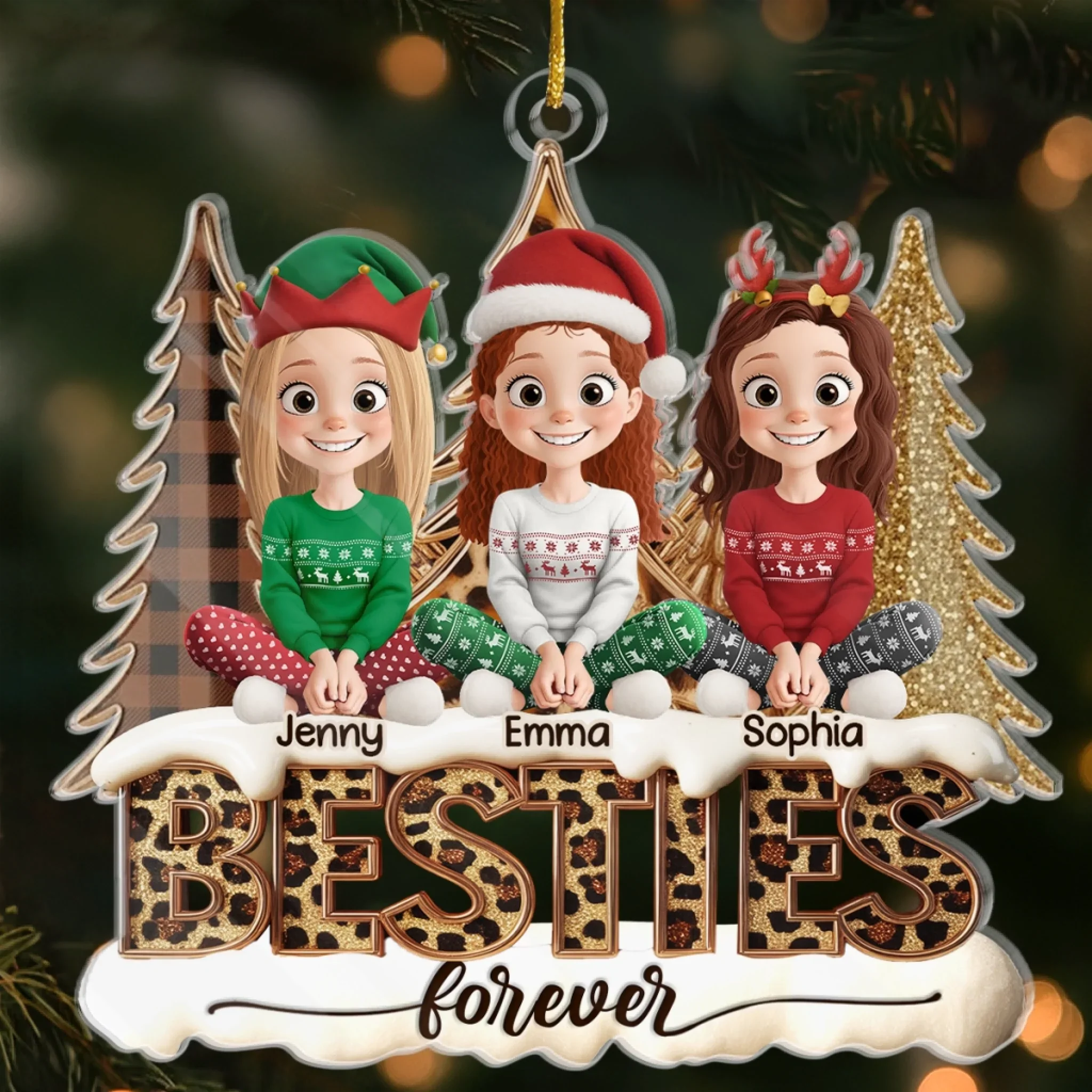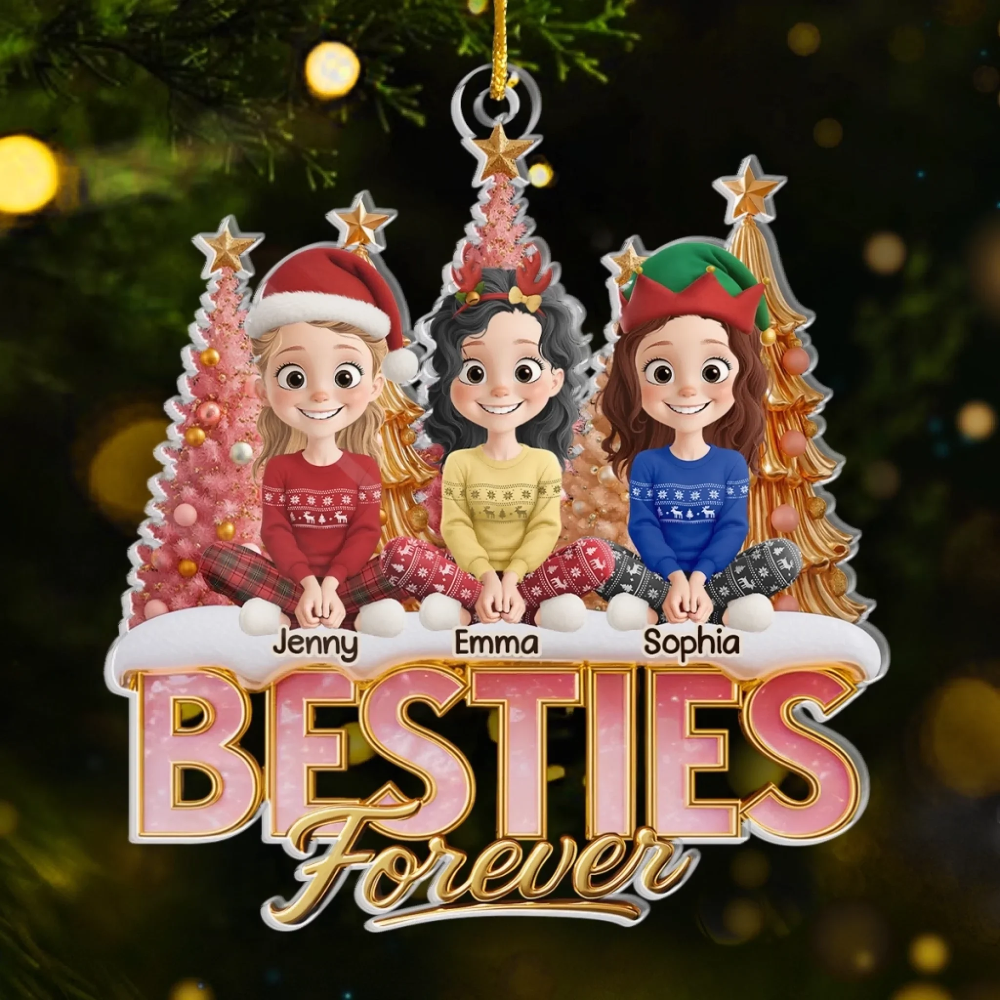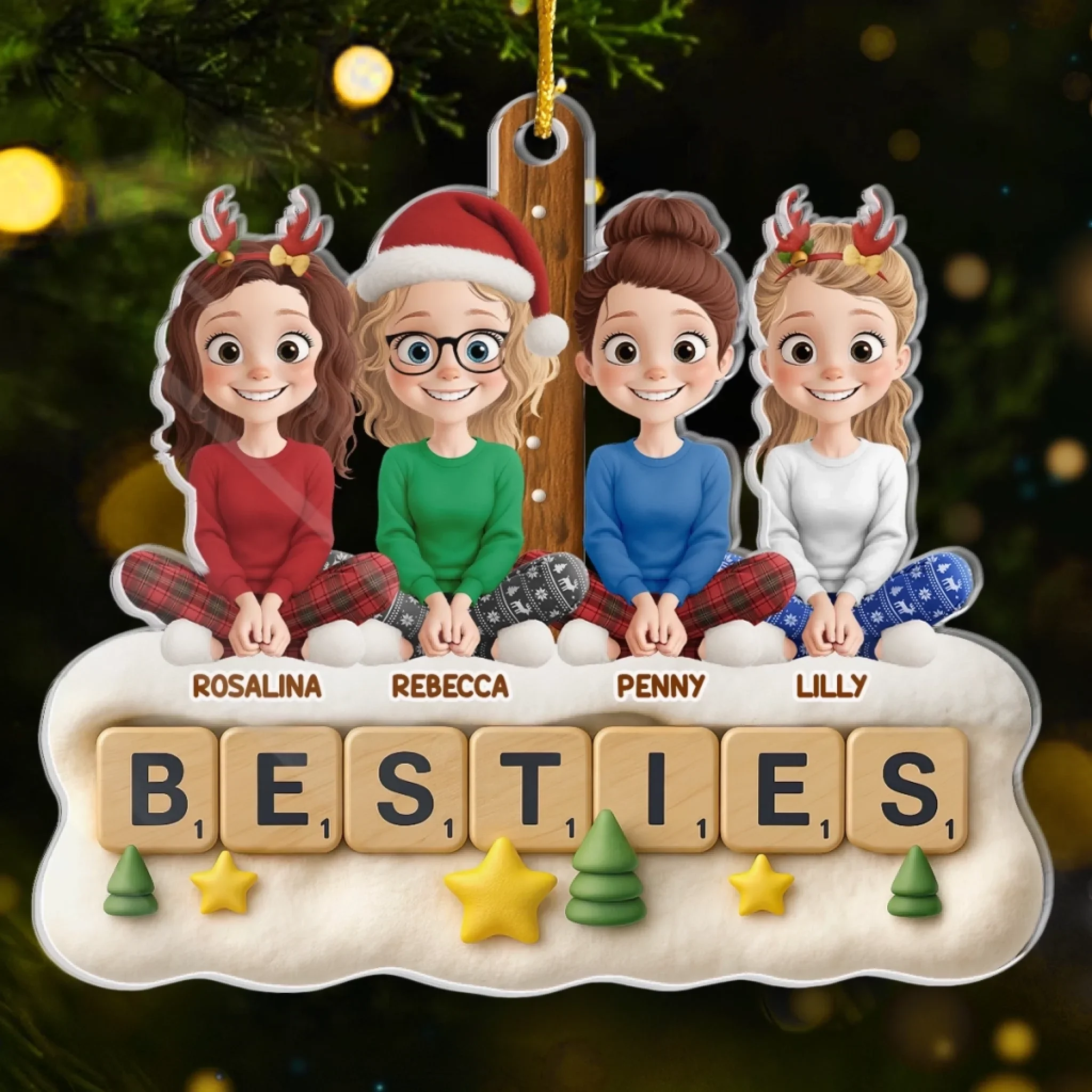 Custom Acrylic Ornament - Personalized Best Friend Christmas Birthday Gifts For Women, Besties, Sisters, BFF - Laughing Through Every Season