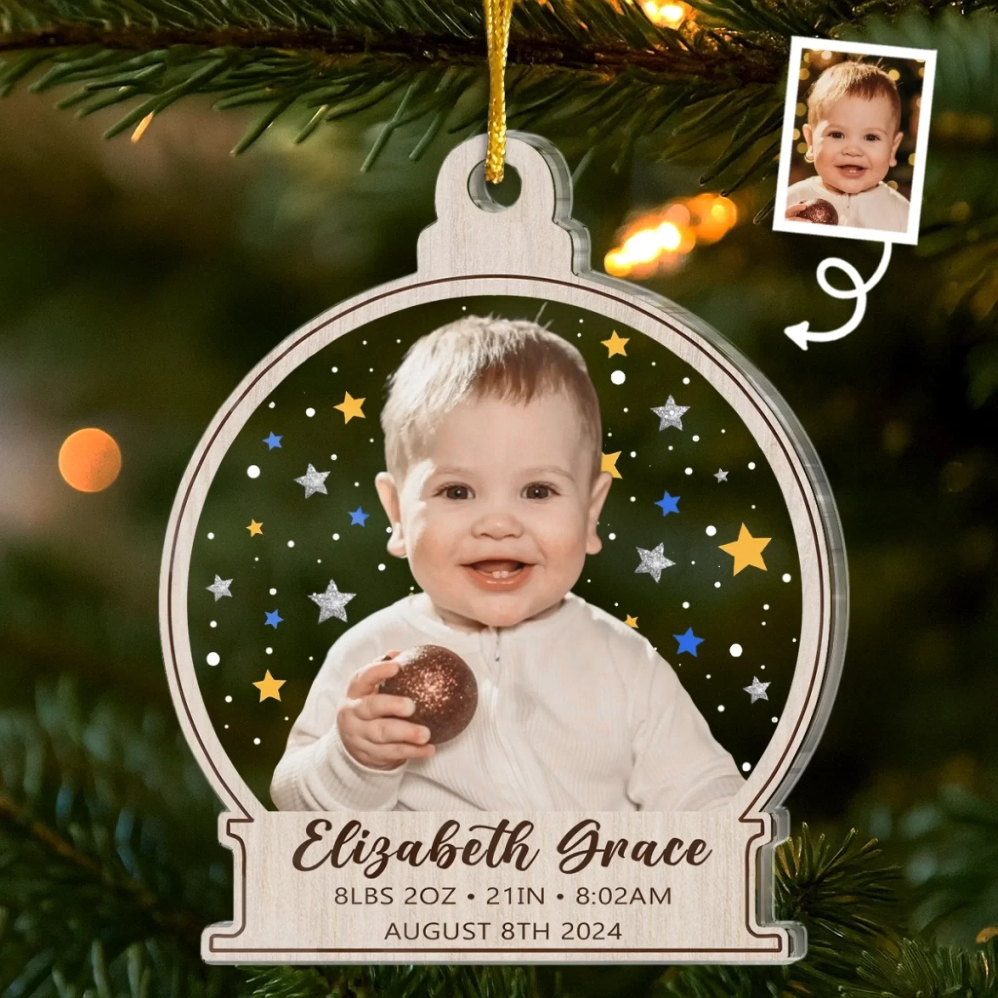 Custom Photo Acrylic Ornament - Personalized Christmas Baby Shower, Gender Reveal Gifts For New Moms, New Dads, New Parents - Tiny Joy Wrapped In Christmas Magic