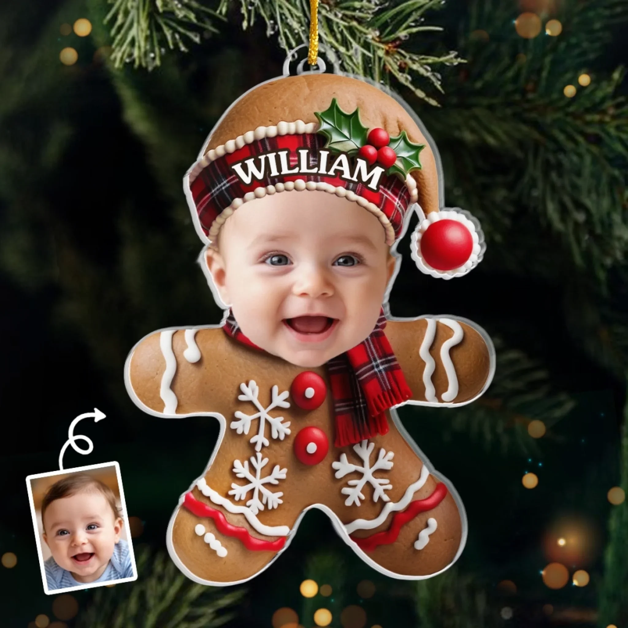 Custom Photo Acrylic Ornament - Personalized Christmas Baby Shower, Gender Reveal Gifts For New Moms, New Dads, New Parents - Gingerbread s Newest Member