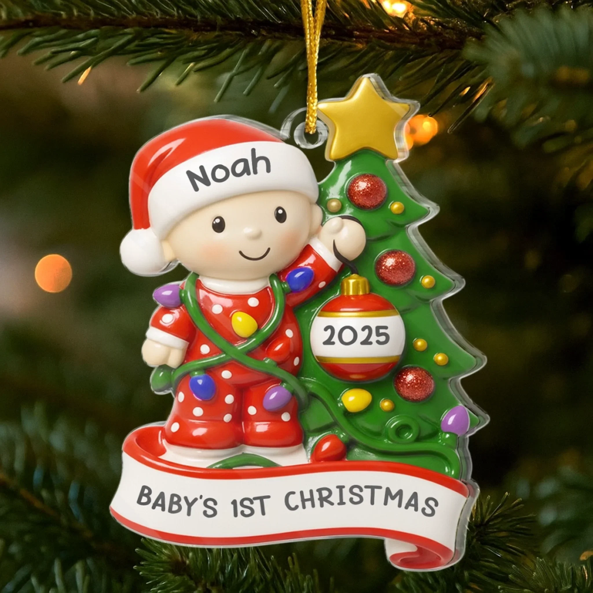 Custom First Christmas Acrylic Ornament - Personalized Christmas Baby Shower, Gender Reveal Gifts For New Moms, New Dads, New Parents - Love Born This Year