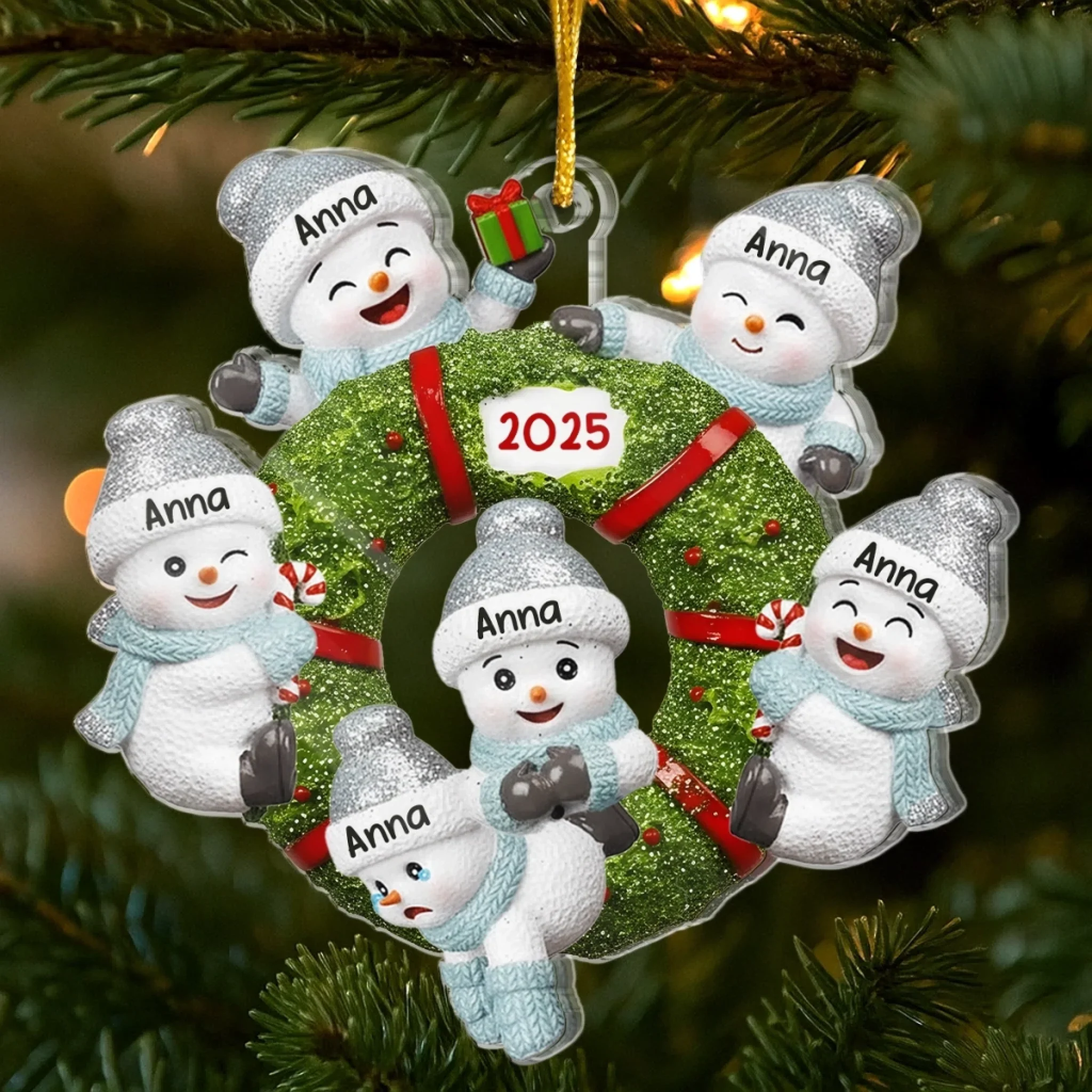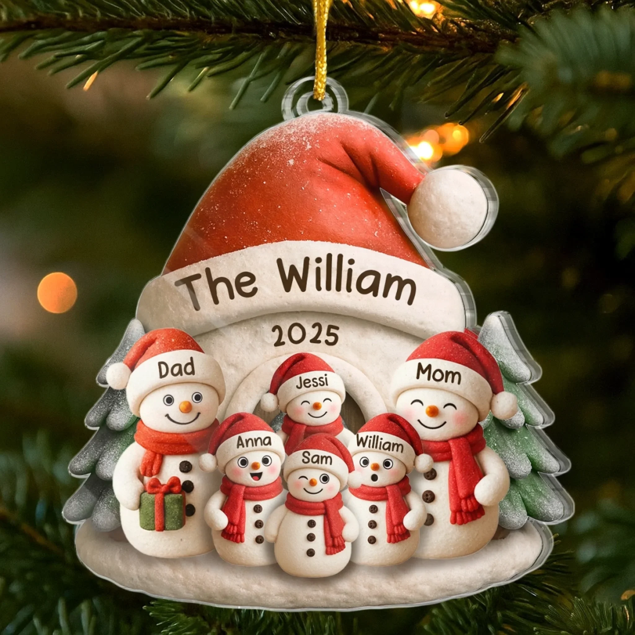 Custom Snowman Family Acrylic Ornament - Personalized Christmas Birthday Gifts For Family, Mom, Dad, Brother, Sister, Kids - Our Frosty Little Family
