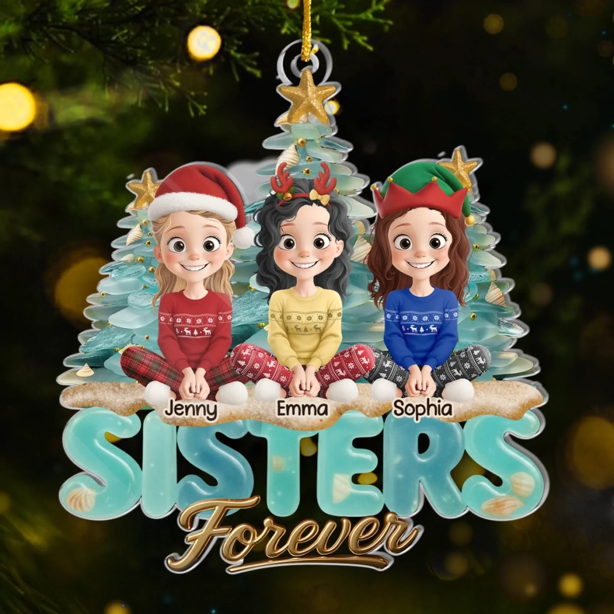 Custom Sea Glass Acrylic Ornament - Personalized Best Friend Christmas Birthday Gifts For Women, Besties, Sisters, BFF, Beach Lovers - Beautifully Weathered Together