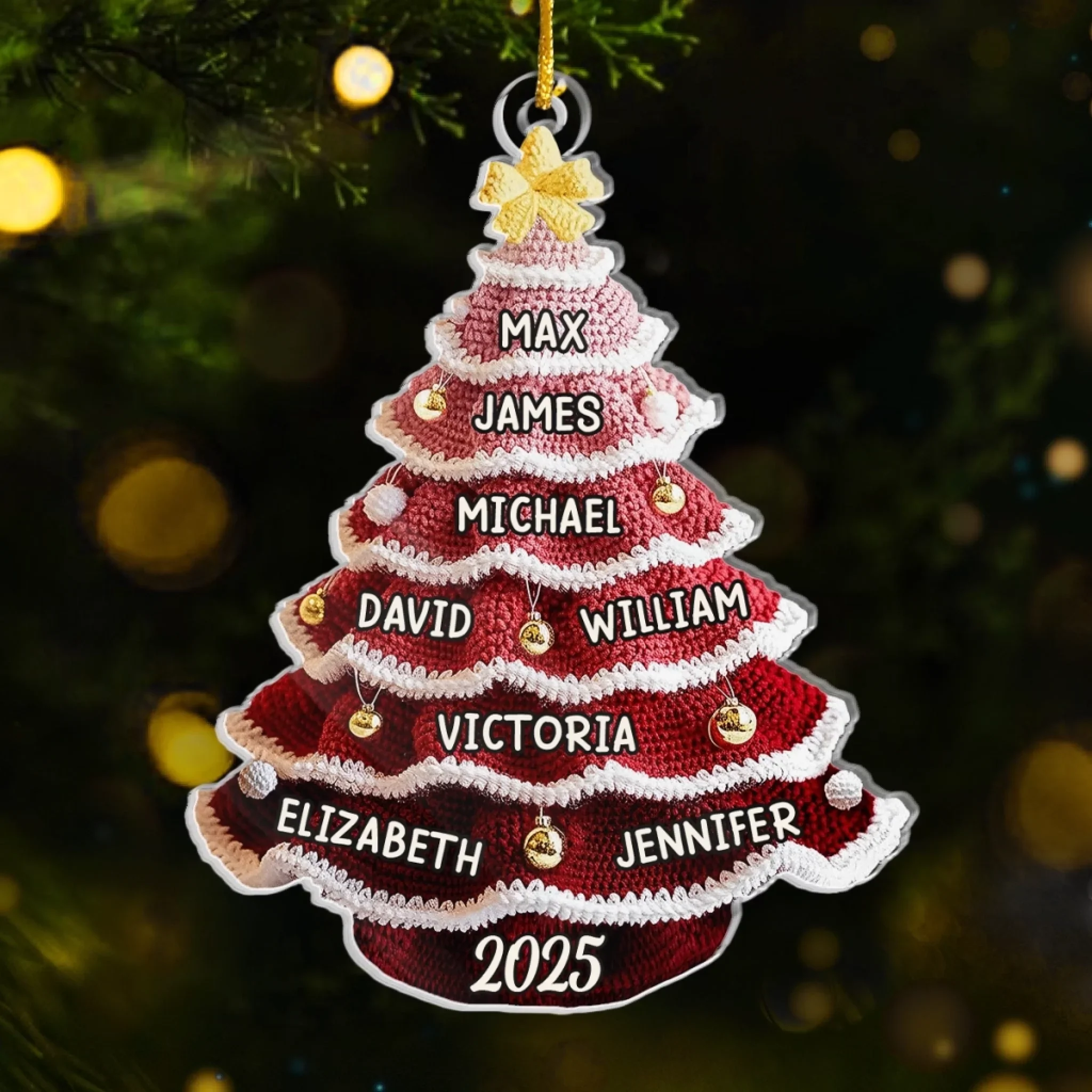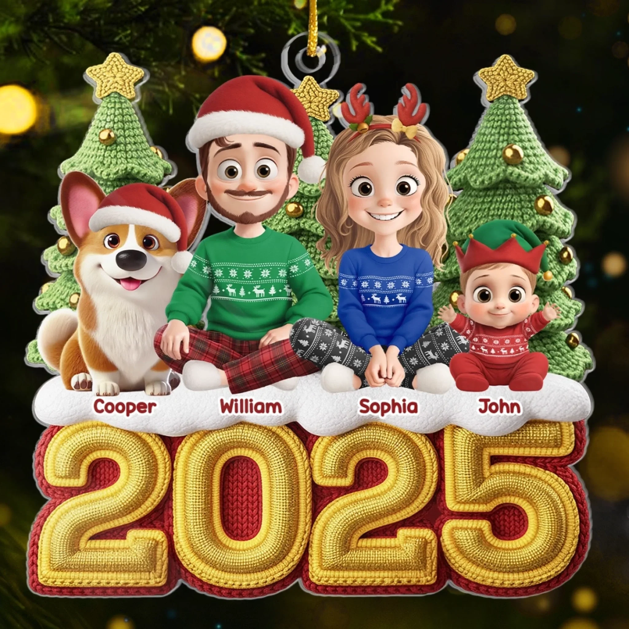 Custom Crochet Acrylic Ornament - Personalized Christmas Birthday Gifts For Family, Dog Cat Lovers - The Golden Year Of Us