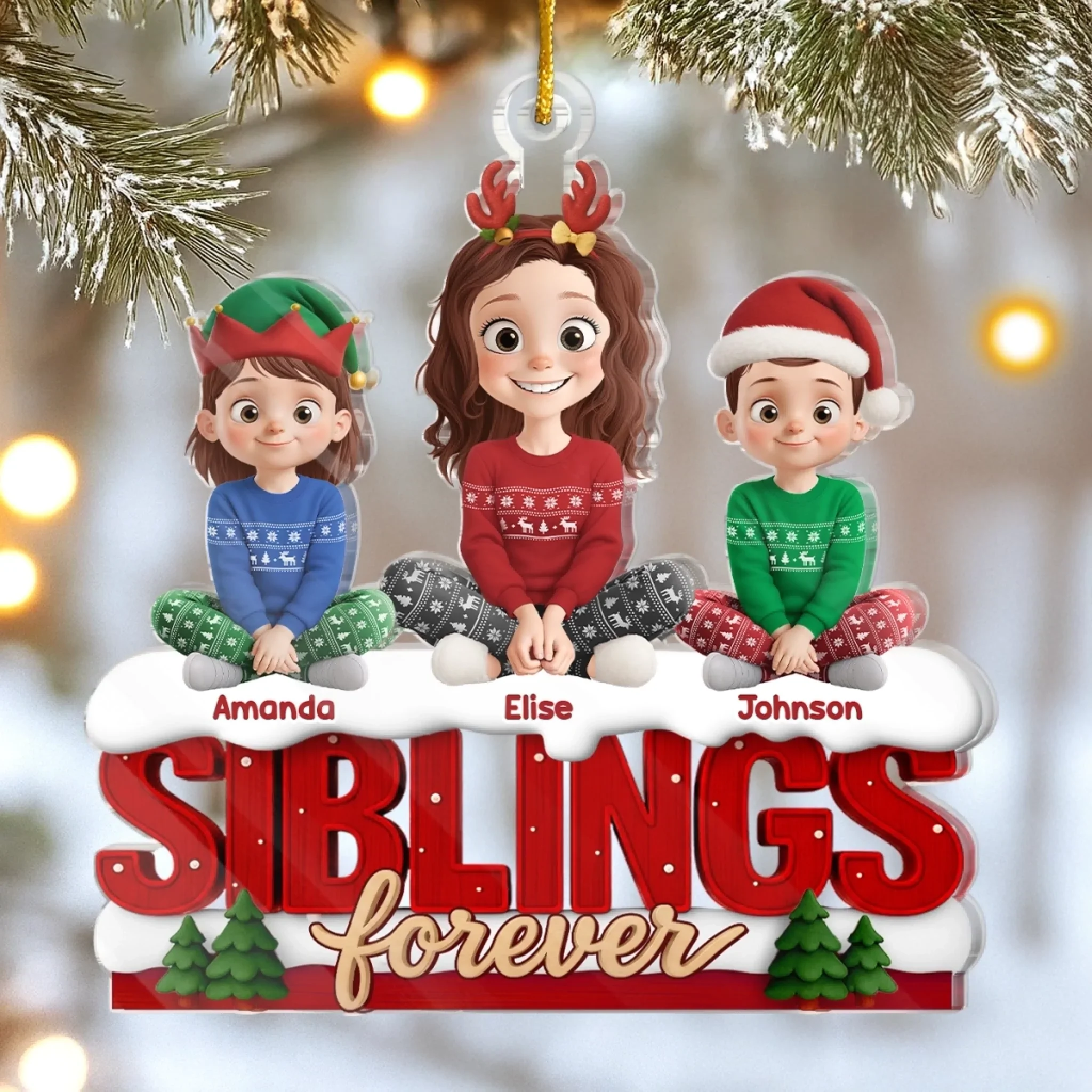Custom Crochet Acrylic Ornament - Personalized Christmas Birthday Gifts For Mom, Dad, Brother, Sister, Kids - Snowy Days Endless Laughs