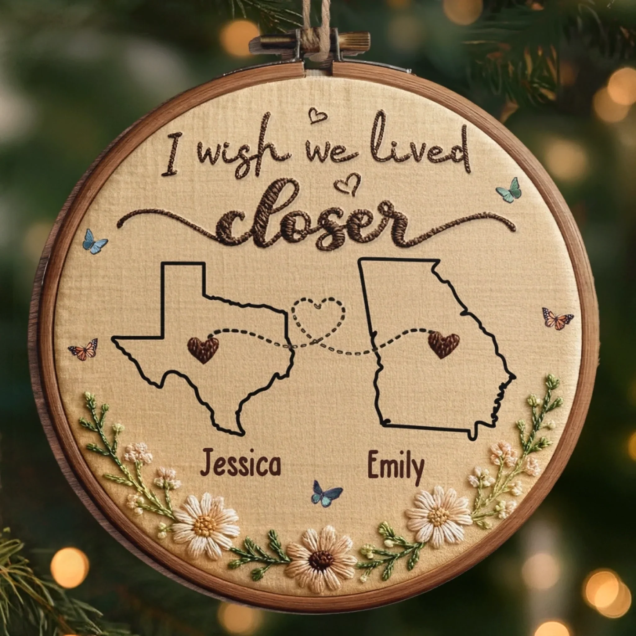 Custom Long Distance Wood Ornament - Personalized Christmas Birthday Gifts For Mom, Dad, Brother, Sister, Kids - Hearts Across States, Bound By Love