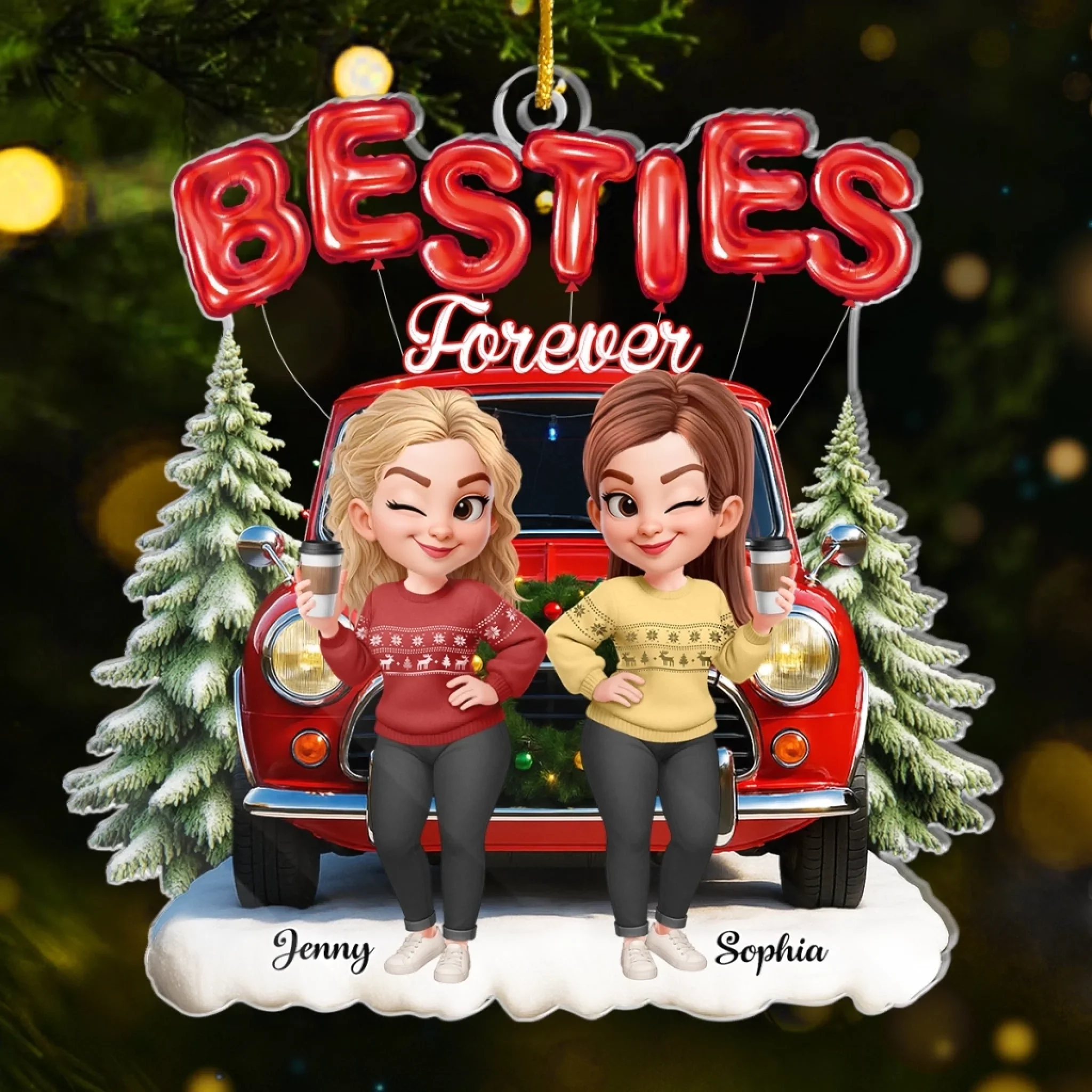 Custom Acrylic Ornament - Personalized Best Friend Christmas Birthday Gifts For Women, Besties, Sisters, BFF - More Than Sisters, We re Each Other s Alibi