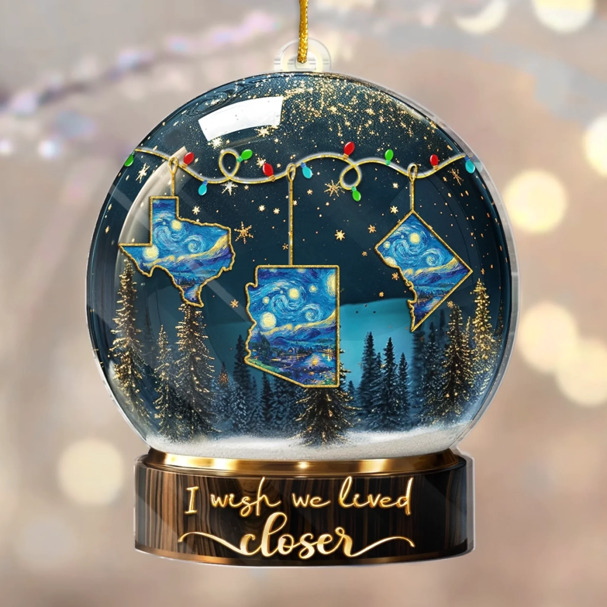 Custom Long Distance Acrylic Ornament - Personalized Best Friend Christmas Birthday Gifts For Women, Besties, Sisters, BFF - Miles Apart Still Sharing Joy