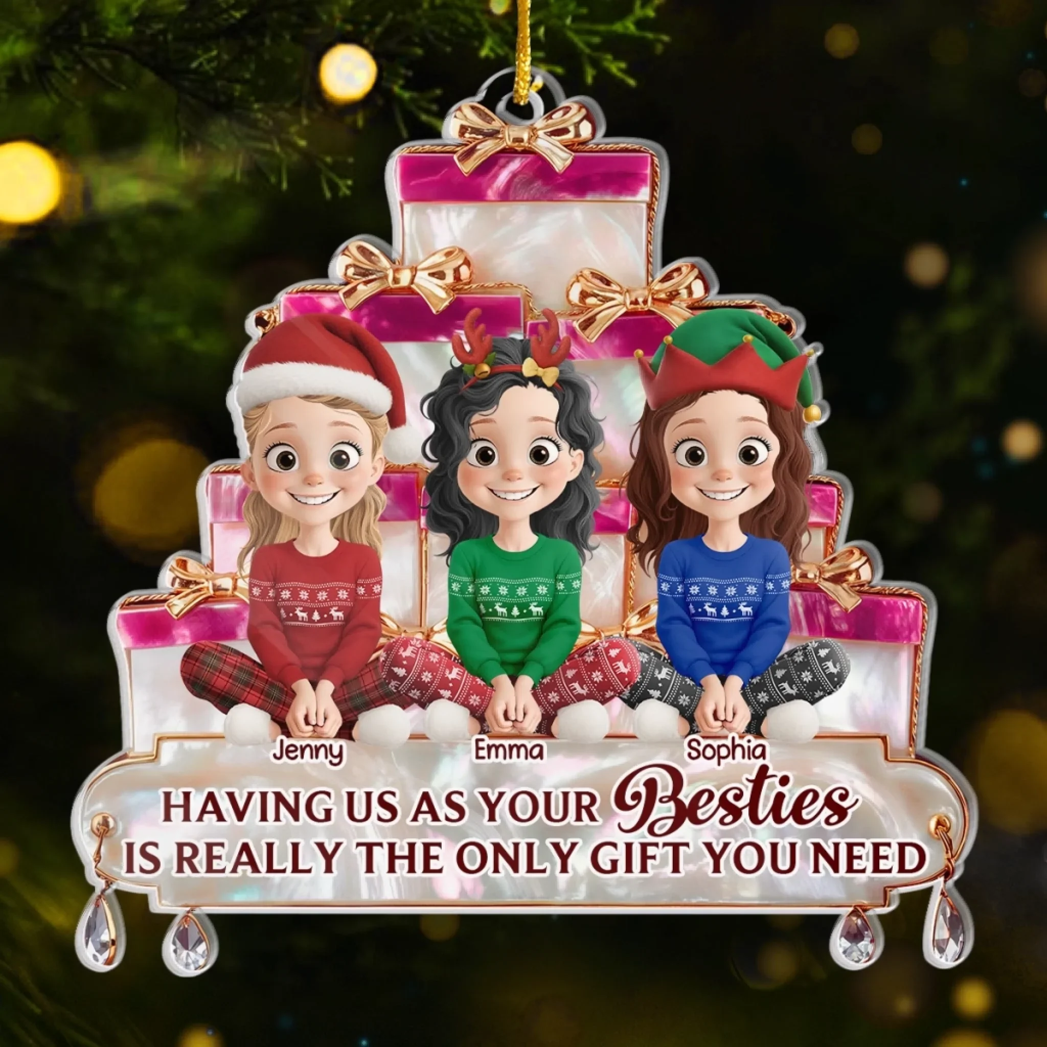 Custom Acrylic Ornament - Personalized Best Friend Christmas Birthday Gifts For Women, Besties, Sisters, BFF - Wrapped In Friendship And Cheer