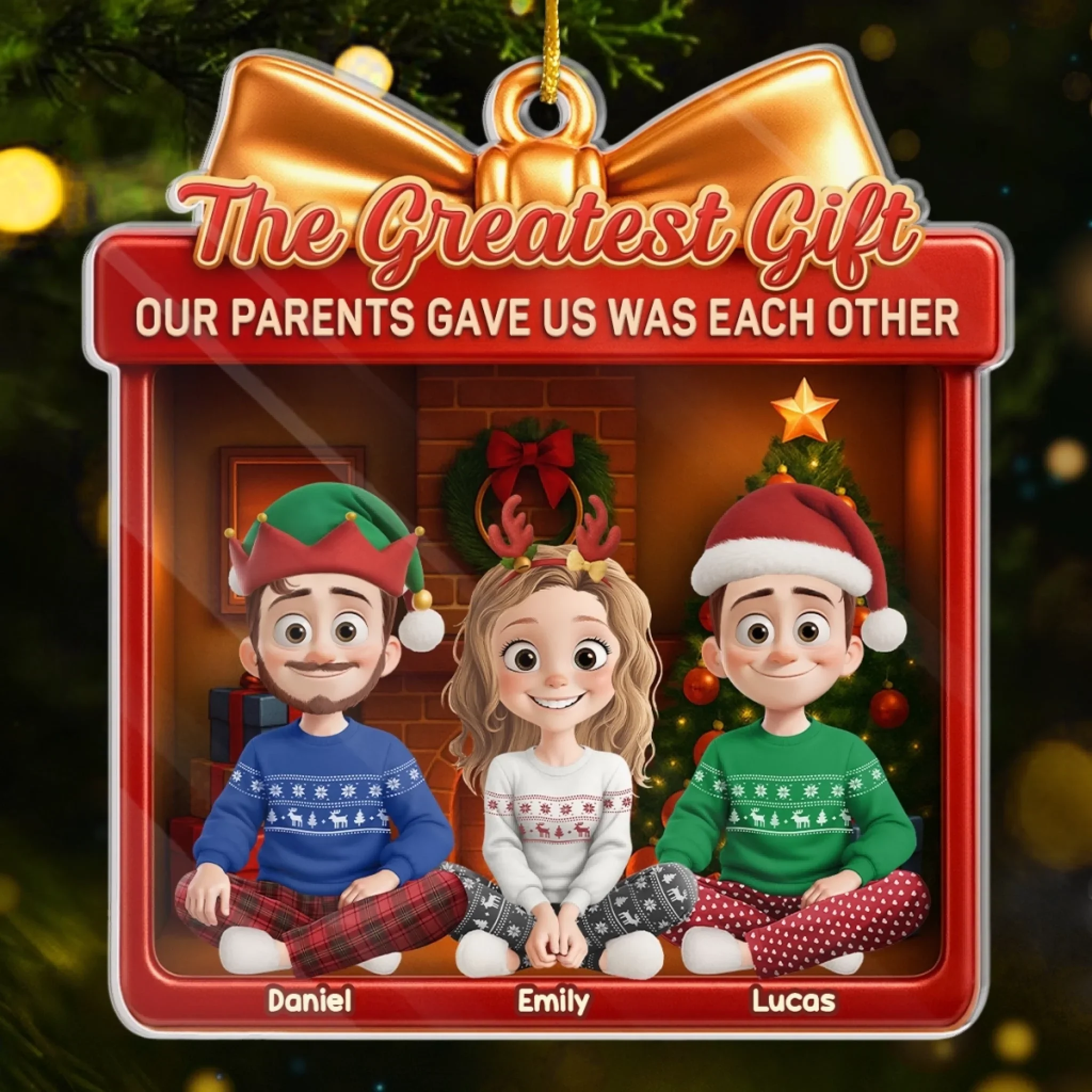 Custom Acrylic Ornament - Personalized Christmas Birthday Gifts For Mom, Dad, Brother, Sister, Kids - Our Parents Gave Us The Greatest Gift, Family