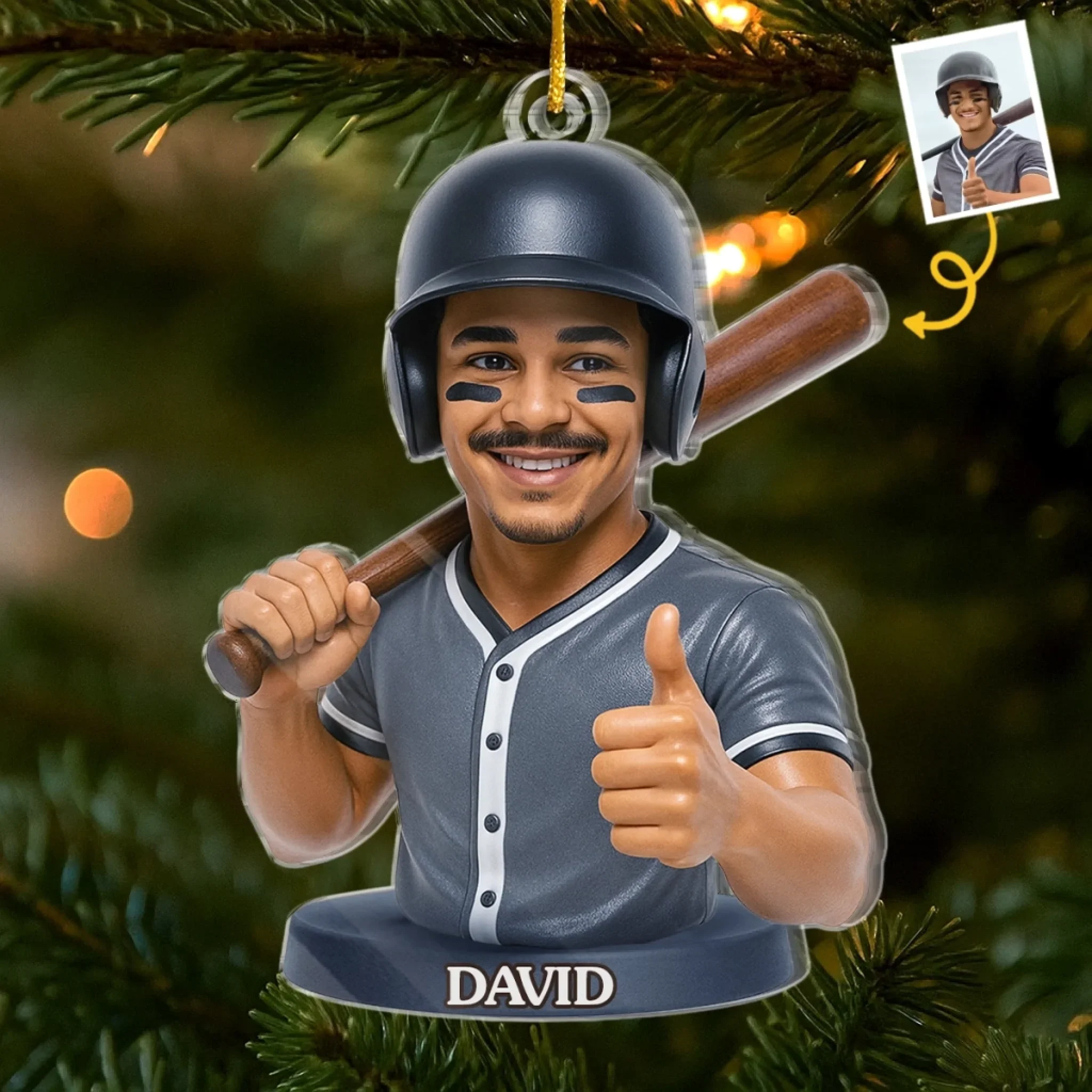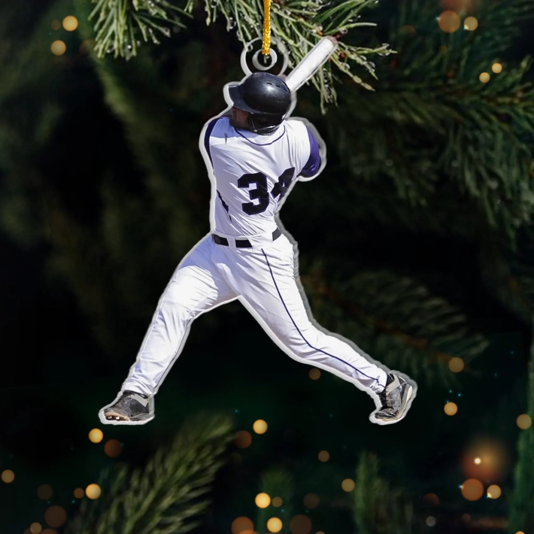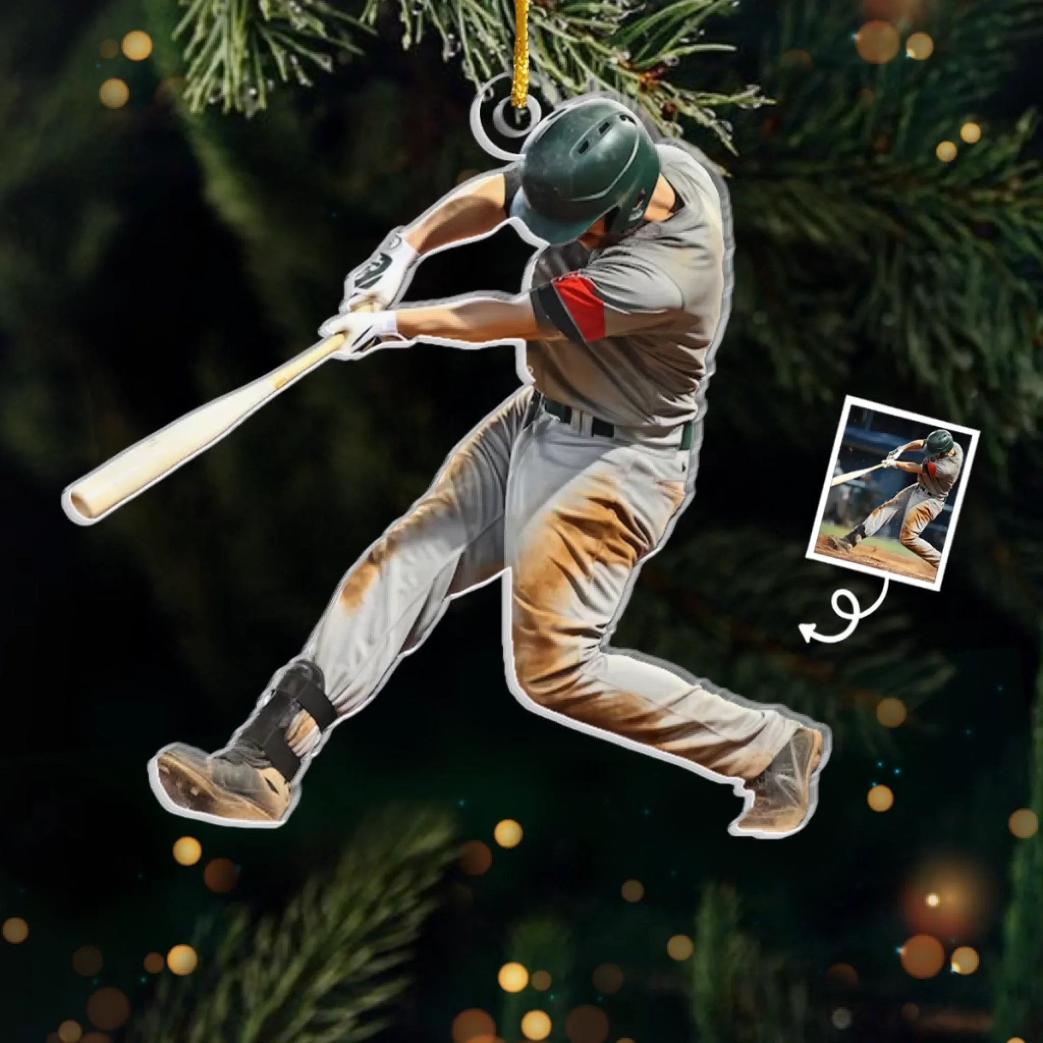 Custom Photo Acrylic Ornament - Personalized Christmas Birthday Sport Gifts For Sports Lovers - Holiday Homerun Hitter
