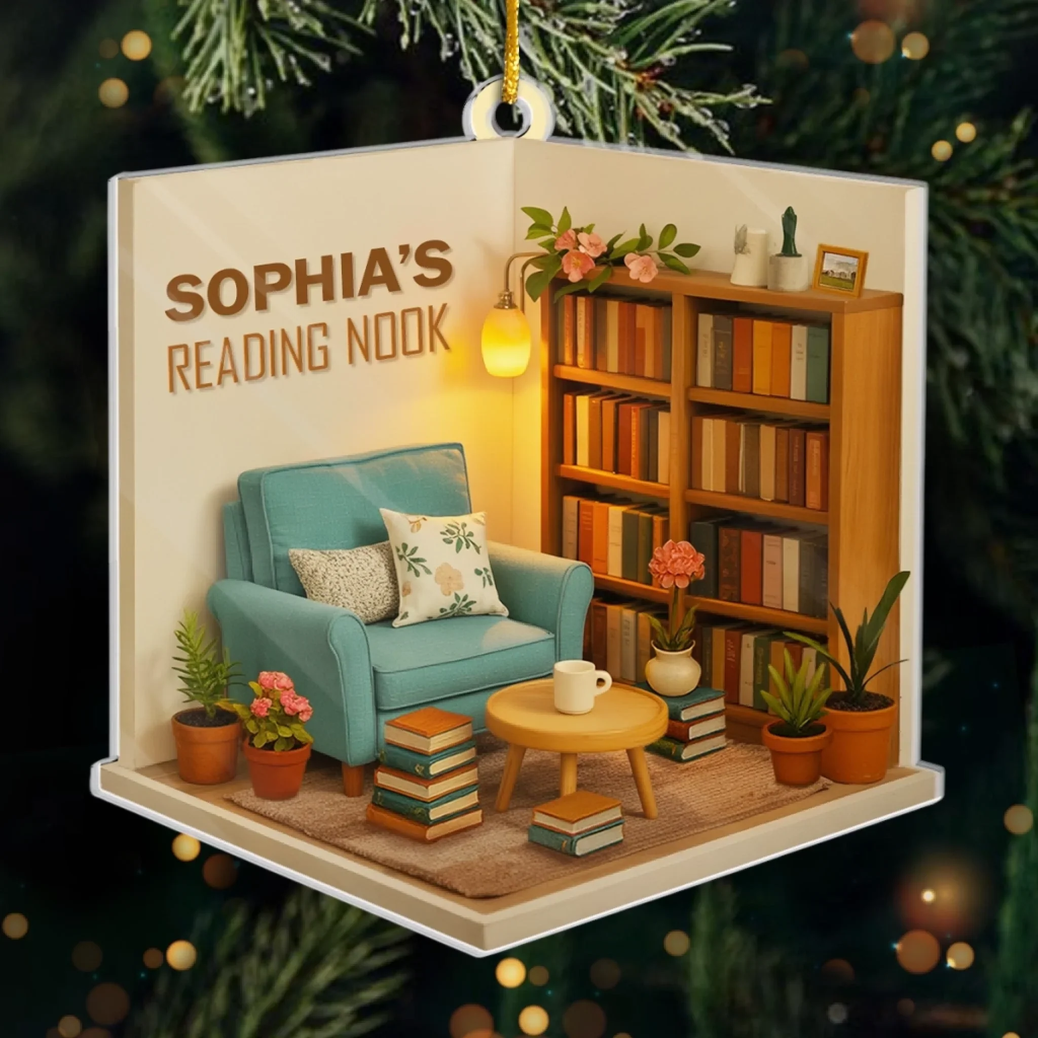 Custom Acrylic Ornament - Personalized Christmas Bookish Gifts For Book Lovers, Bookworms, Readers - A Reading Nook Made Of Dreams