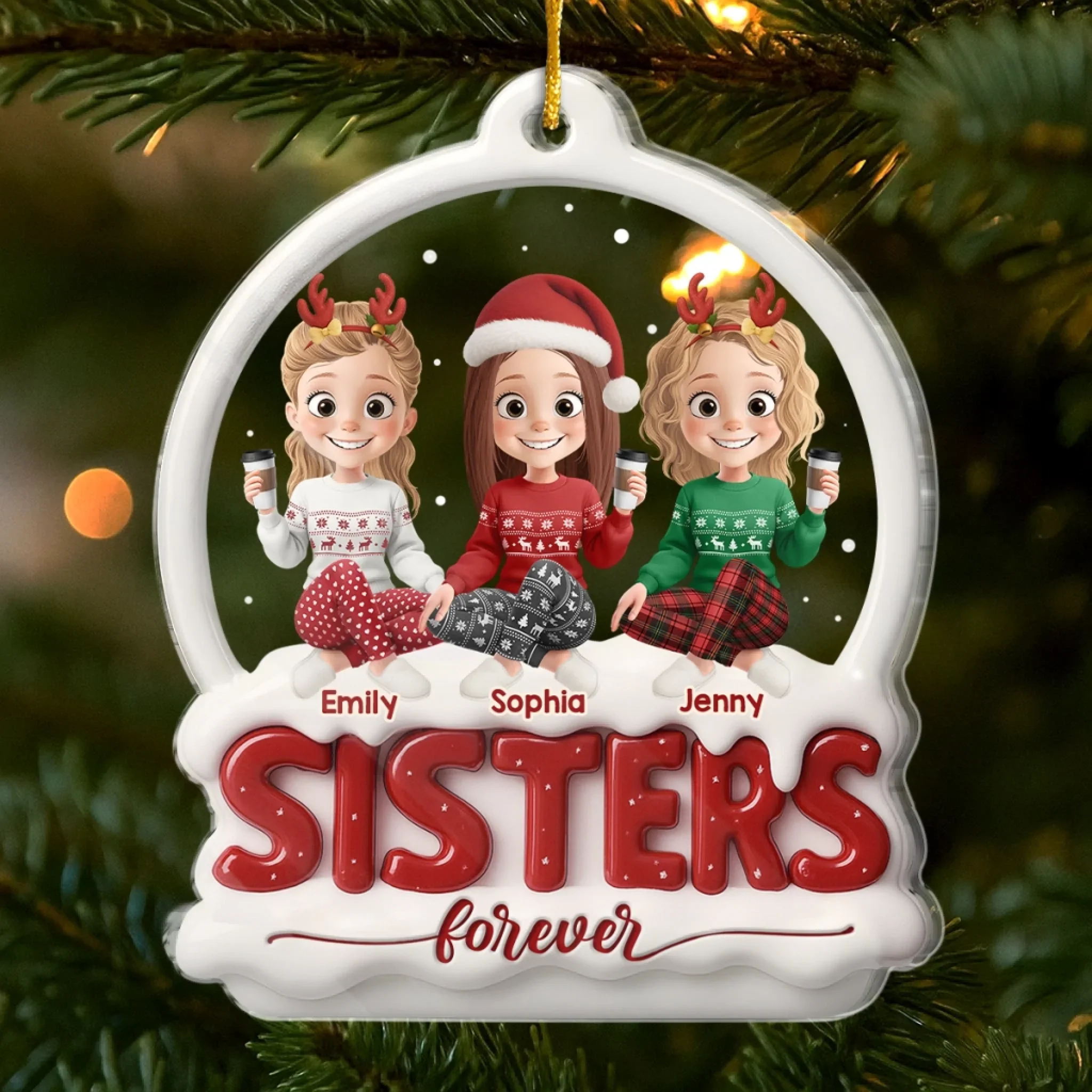 Custom Acrylic Ornament - Personalized Best Friend Christmas Birthday Gifts For Women, Besties, Sisters, BFF - Sharing Laughs Under Christmas Lights
