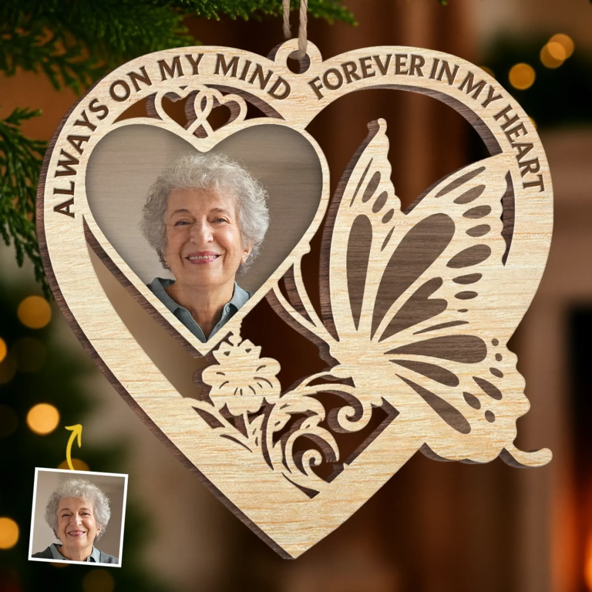 Custom Photo Wood Ornament - Personalized Christmas Memorial Sympathy Gifts For Loss Of Mom, Dad - In Loving Memory