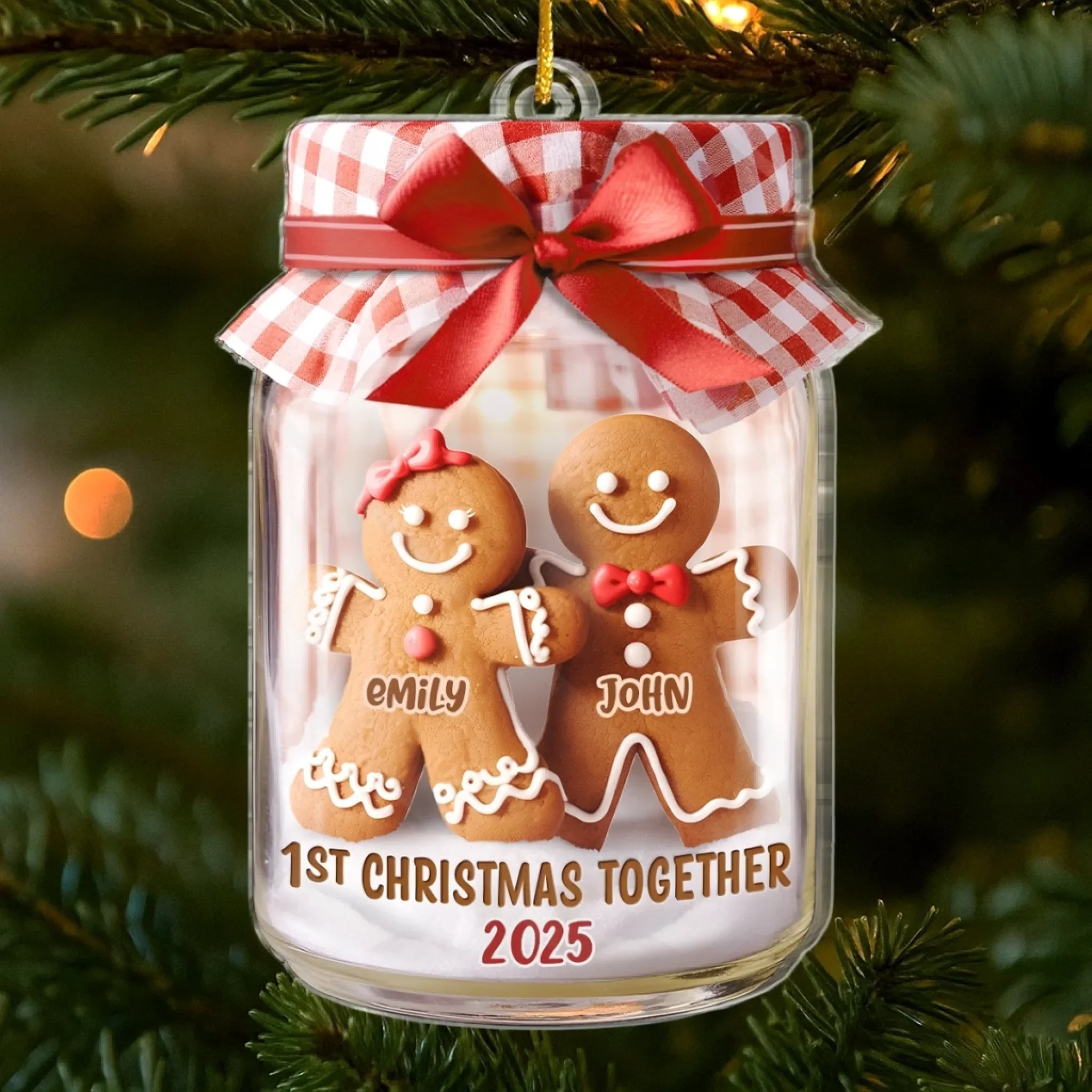 Custom First Christmas Acrylic Ornament - Personalized Anniversary Christmas Wedding Gifts For Husband And Wife, Him And Her - Gingerbread Hearts Together