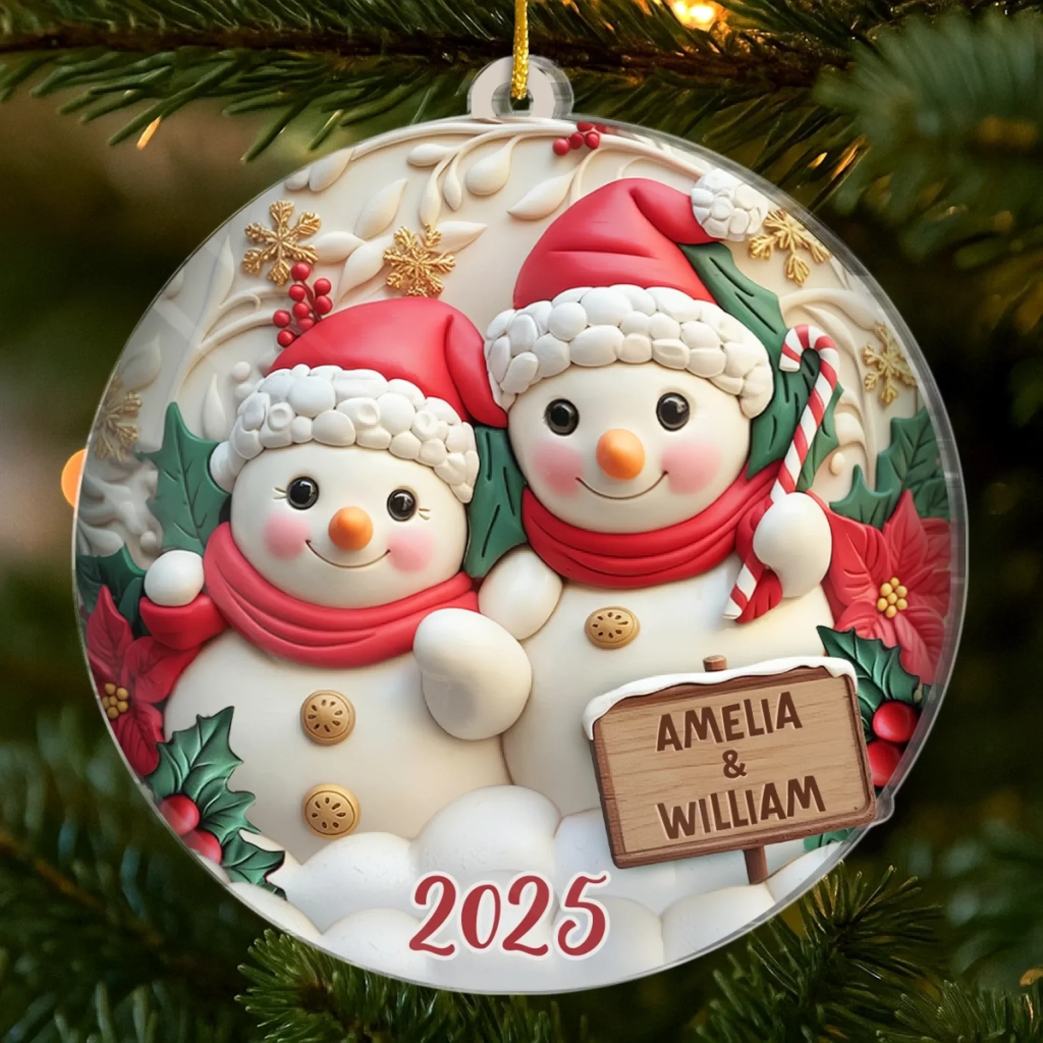 Custom Snowman Acrylic Ornament - Personalized Anniversary Christmas Wedding Gifts For Husband And Wife, Him And Her - Snow Couple, Snow Love