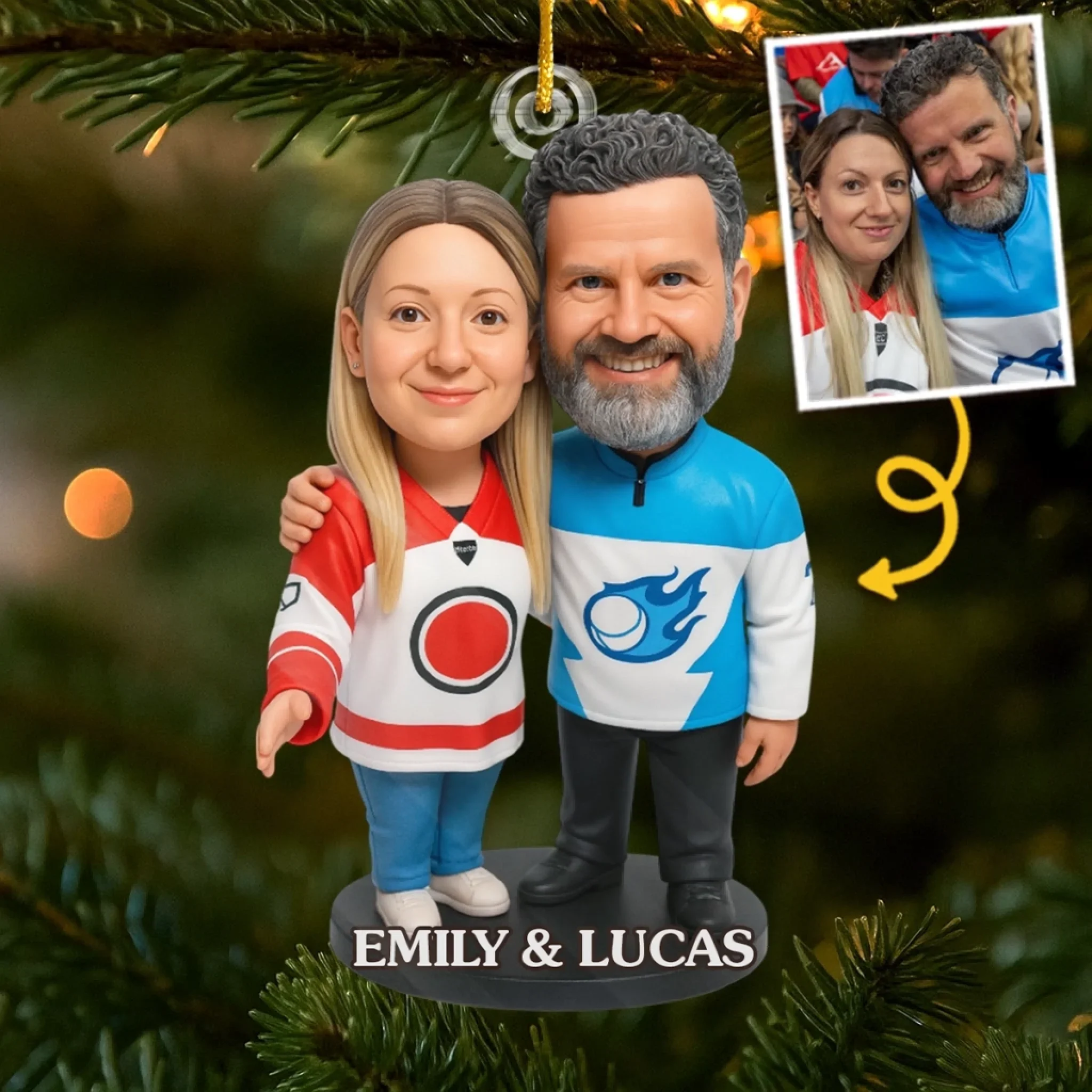 Custom Photo Acrylic Ornament - Personalized Christmas Birthday Ice Hockey Gifts For Ice Hockey Lovers, Sports Fans, Sports Lovers, Husband And Wife - Love On Ice, Forever Nice