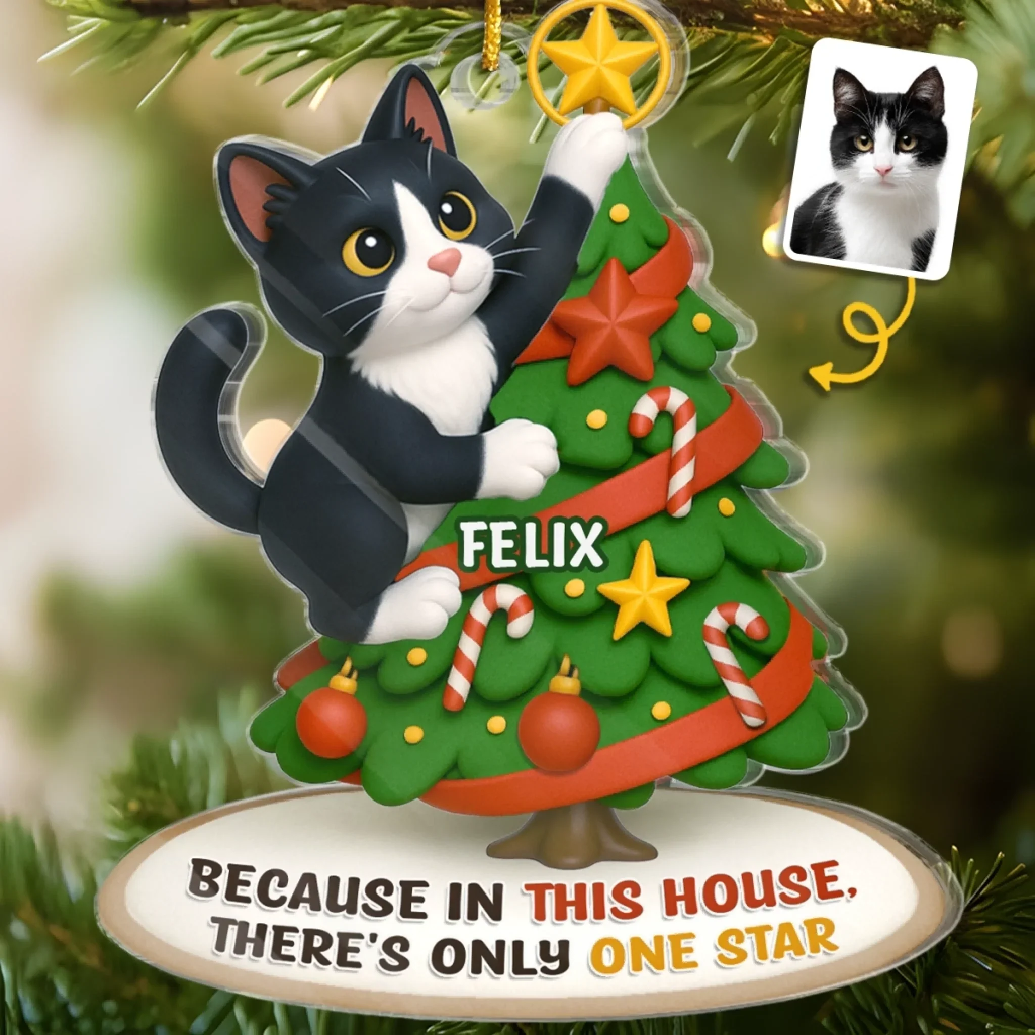 Custom Photo Acrylic Ornament - Personalized Christmas Birthday Gifts For Dog Cat Lovers, Dog Dad And Mom, Cat Owners - Cat Steals The Show