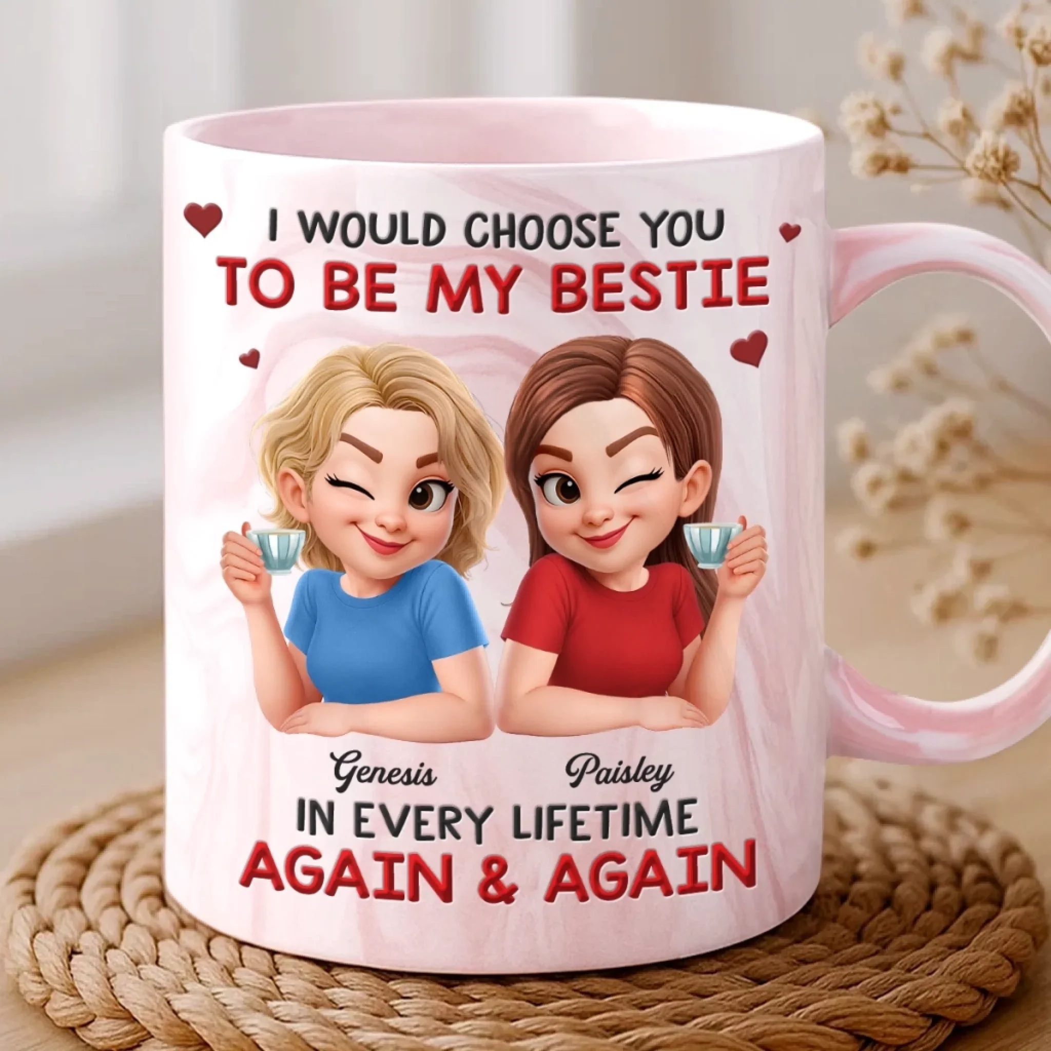 Custom 11oz Pink Marble Mug - Personalized Best Friend Birthday Gifts For Women, Besties, Sisters, BFF - Pretty Minds Pink Hearts