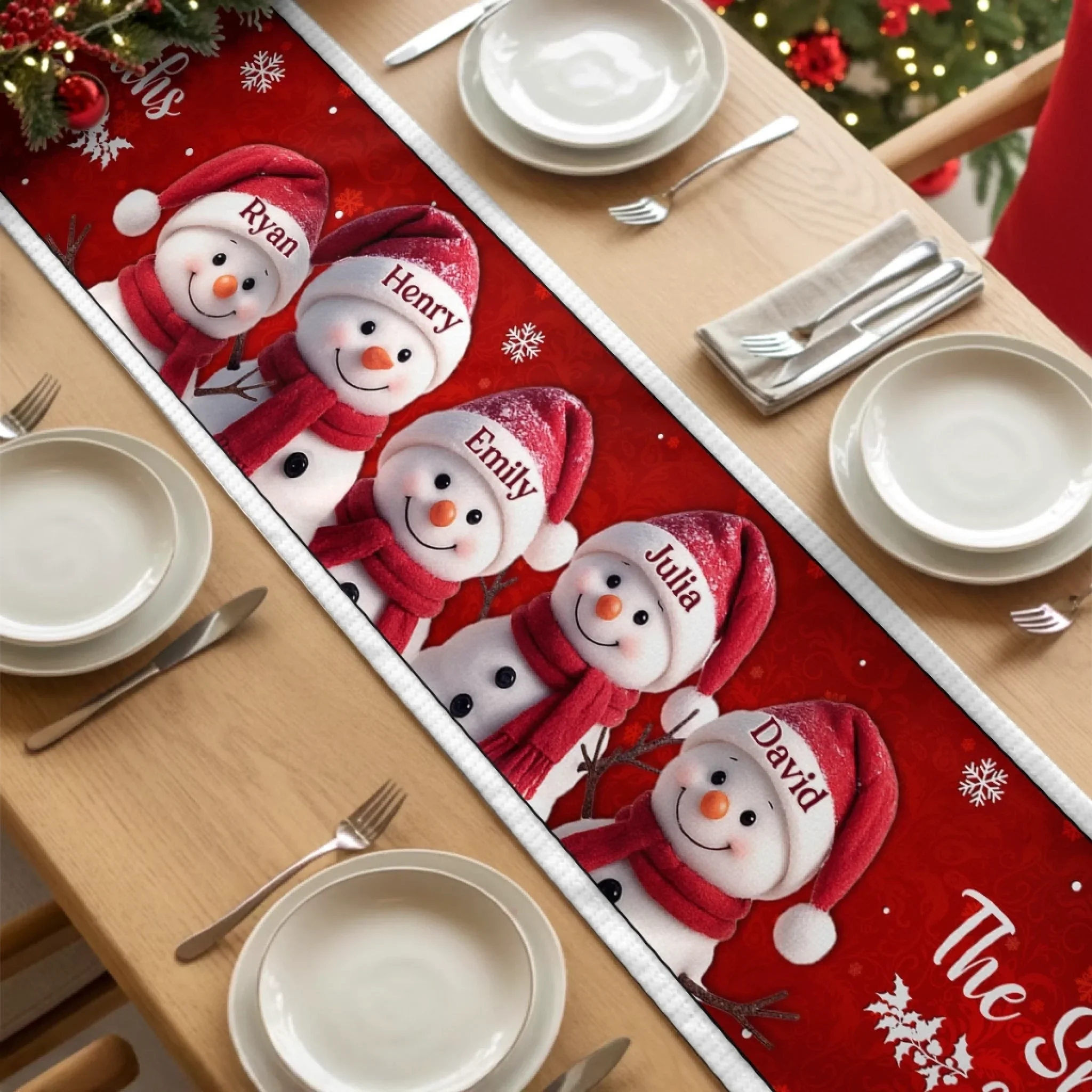 Custom Snowman Table Runner - Personalized Christmas Birthday Gifts For Mom, Dad, Brother, Sister, Kids - Joy Wrapped Around Our Hearts