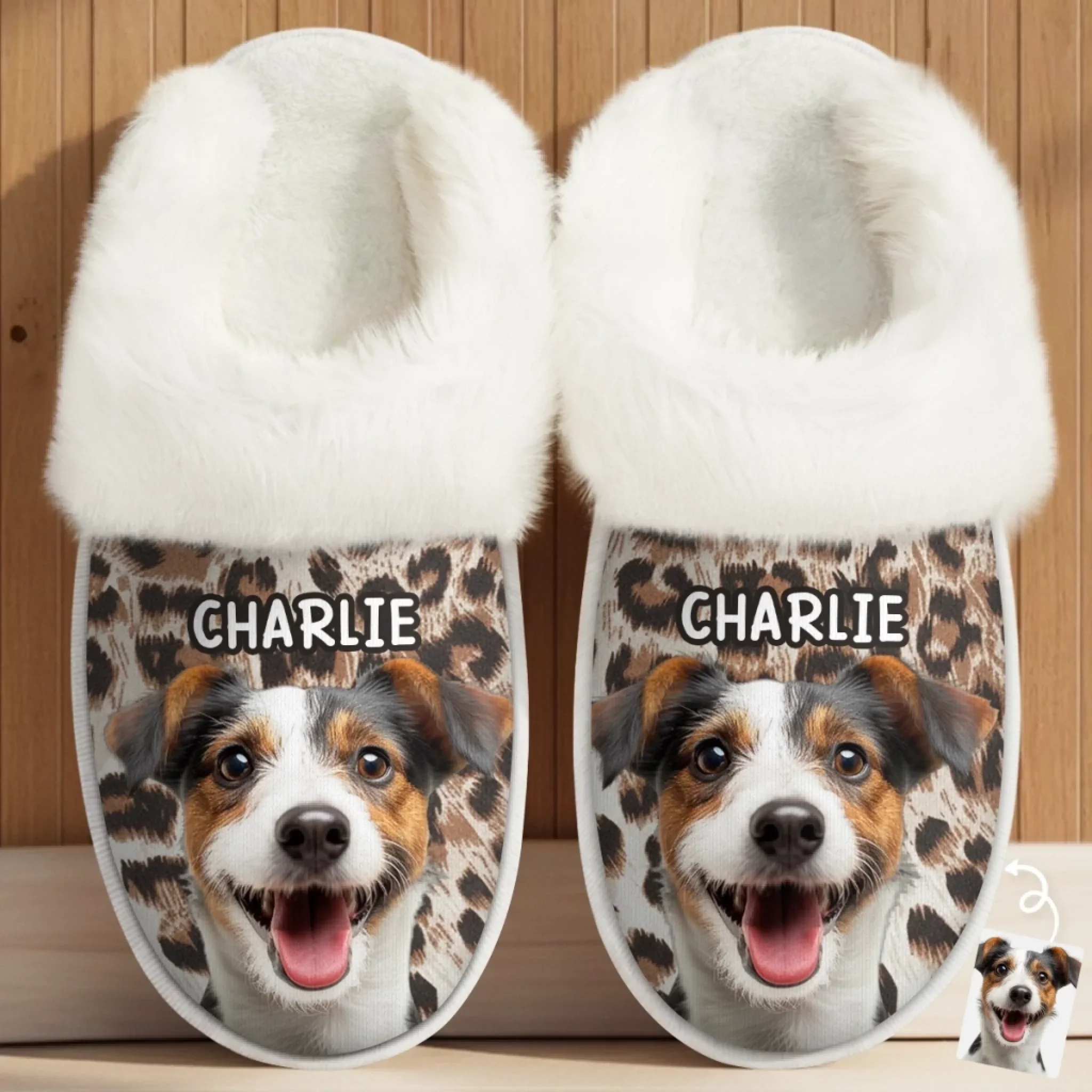 Custom Photo Fluffy Slippers With Fur Lining - Personalized Christmas Birthday Gifts For Dog Cat Lovers, Dog Dad And Mom, Cat Owners - Love In Every Footprint