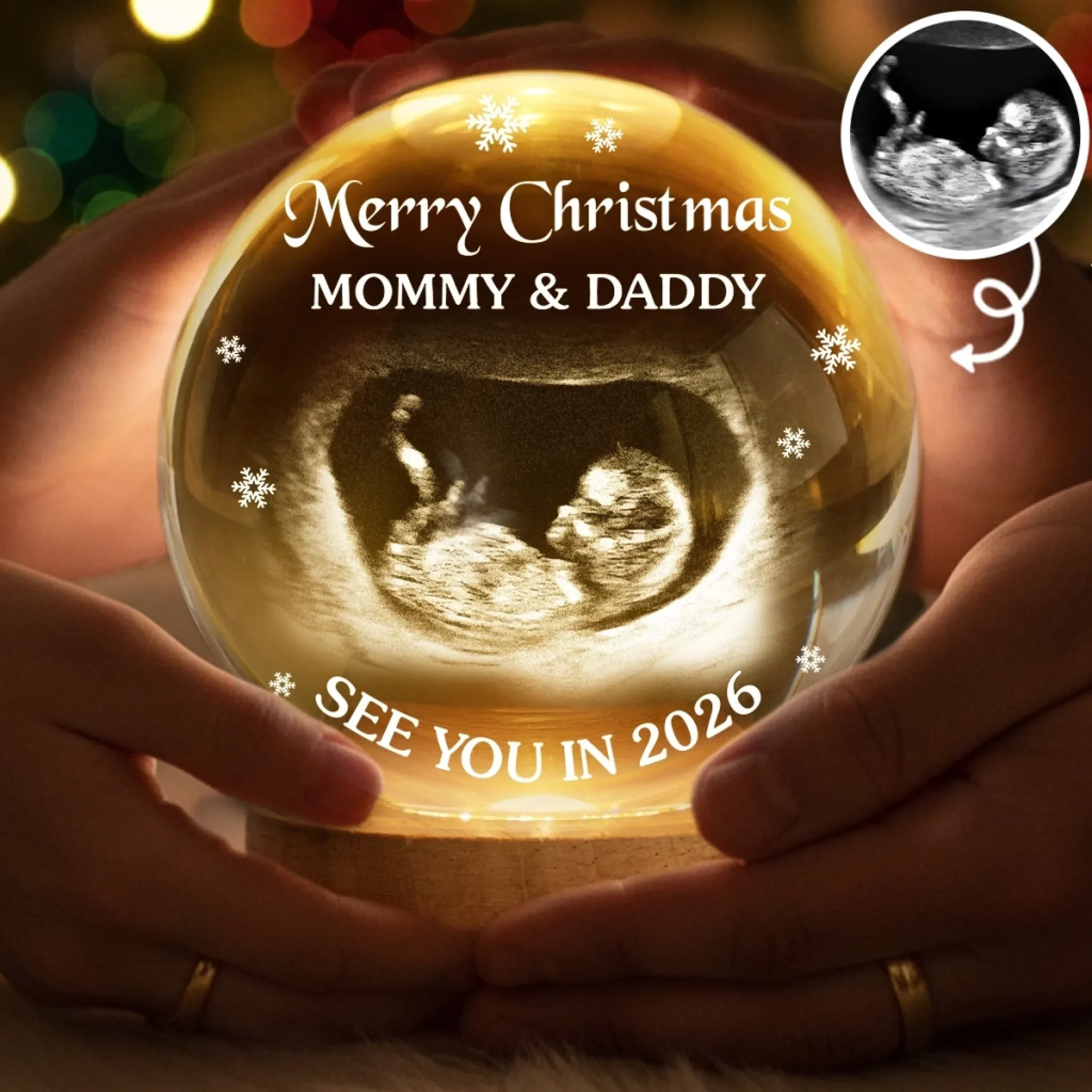 Custom Photo Crystal Globe Lamp - Personalized Christmas Baby Shower, Gifts For New Moms, New Dads, New Parents - You Are Our Light