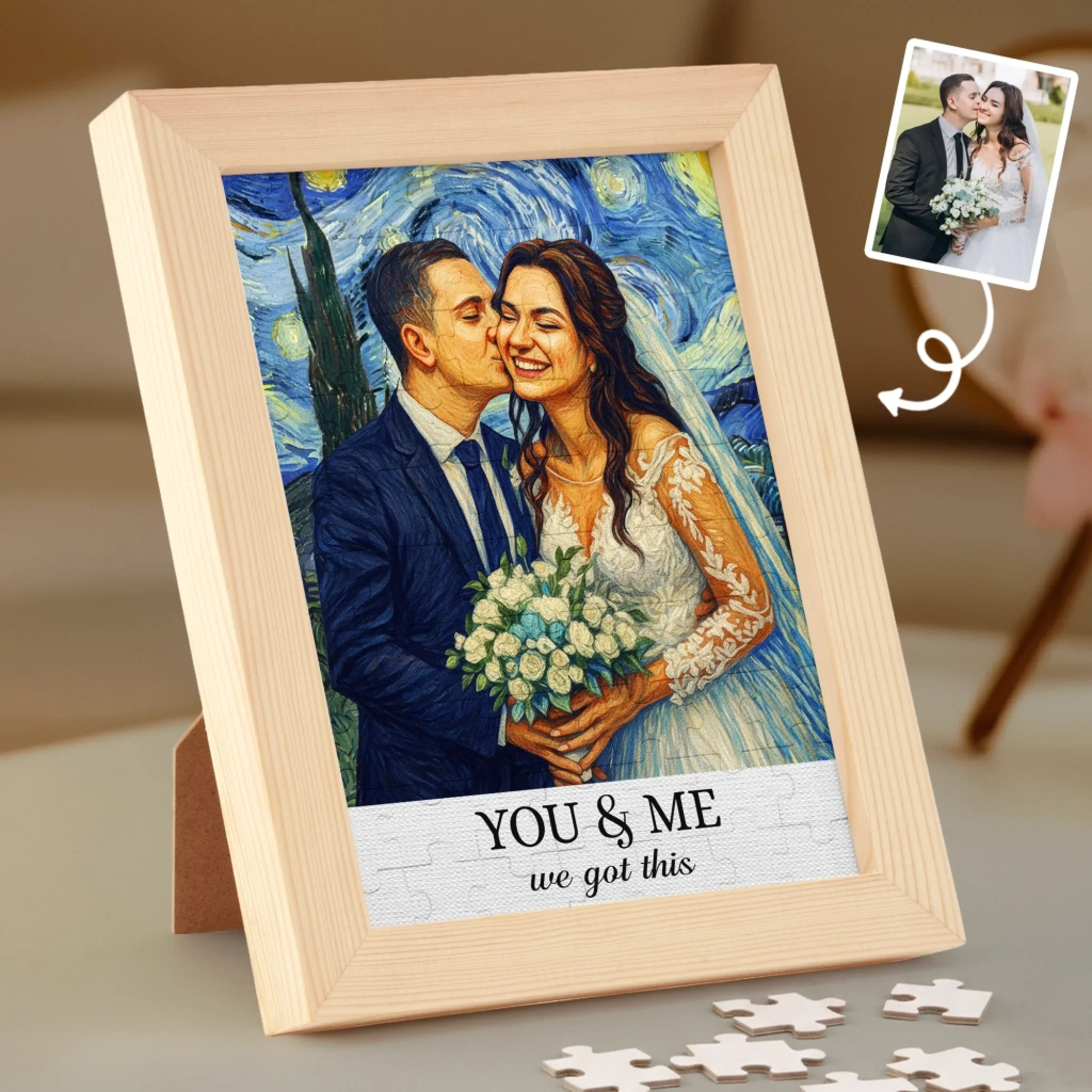 Custom Photo Starry Night Puzzle With Wooden Frame - Personalized Anniversary Wedding Gifts For Husband And Wife, Him And Her - A Masterpiece Made Of Love