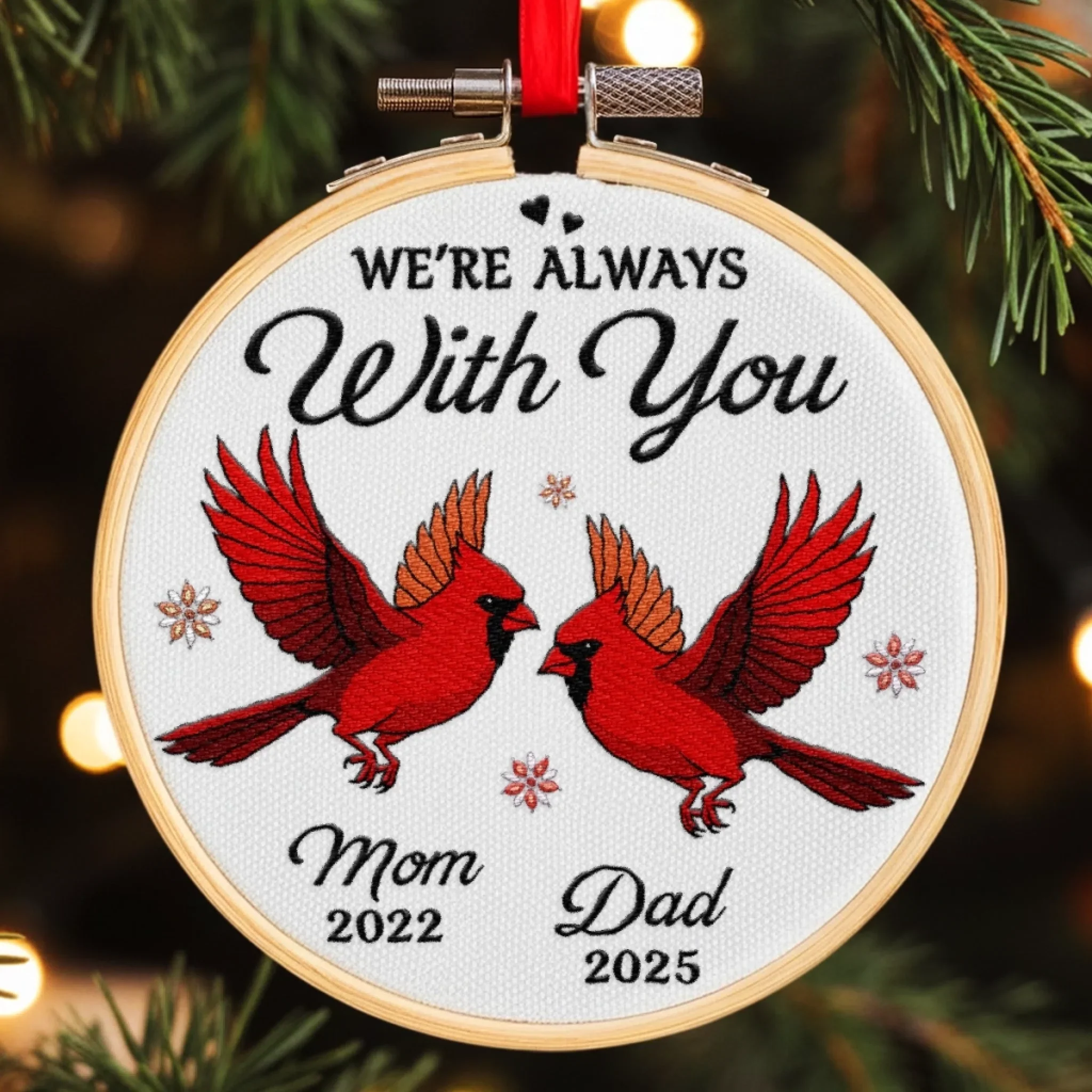 Custom Cardinal Embroidered Ornament - Personalized Christmas Memorial Sympathy Gifts For Loss Of Mom, Dad - Forever In The Warmth Of Love