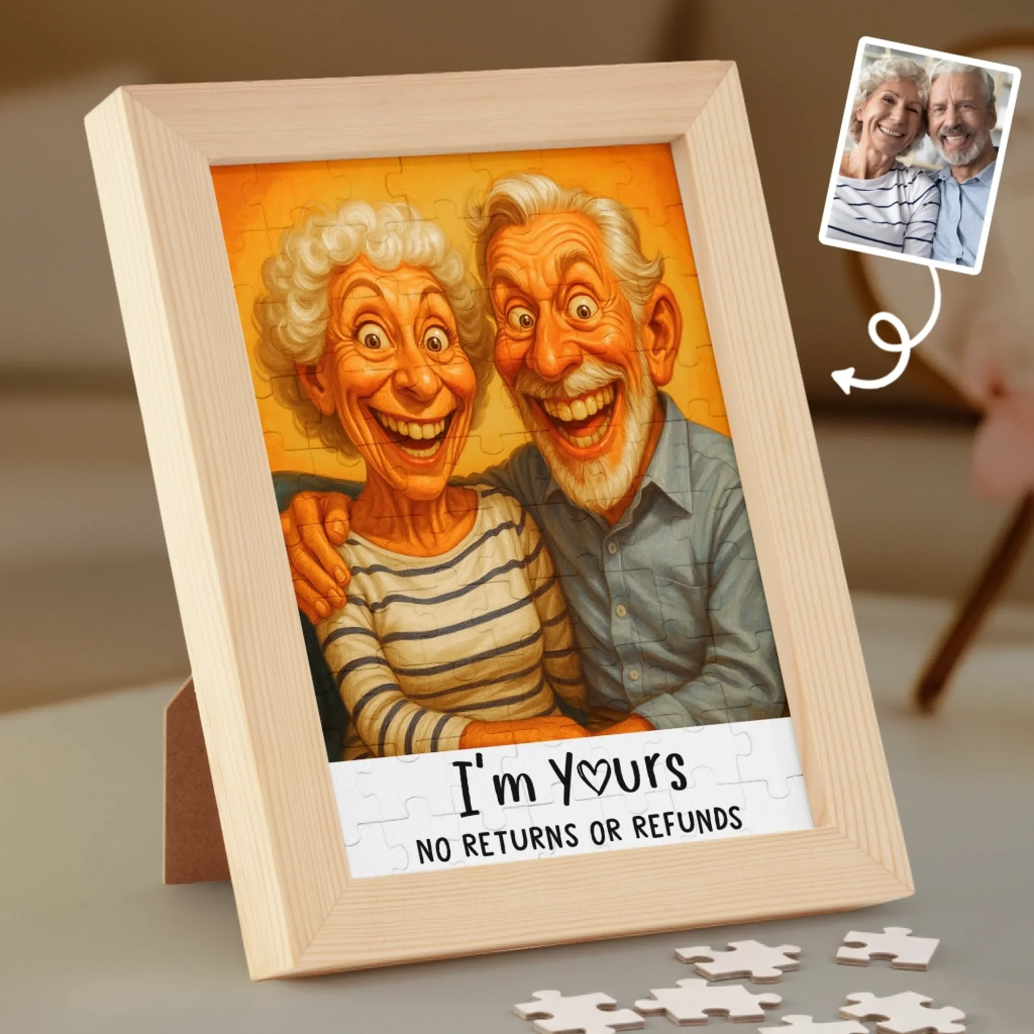 Custom Photo Funny Caricature Puzzle With Wooden Frame - Personalized Anniversary Wedding Gifts For Husband And Wife, Him And Her - Stuck With Me, Lucky You