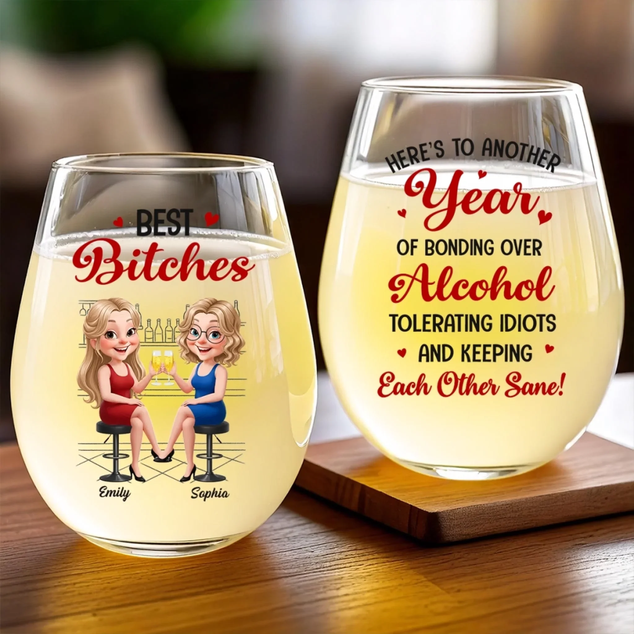 Custom Wine Glass - Personalized Best Friend Birthday Gifts For Women, Besties, Sisters, BFF - Vino Vibes Only