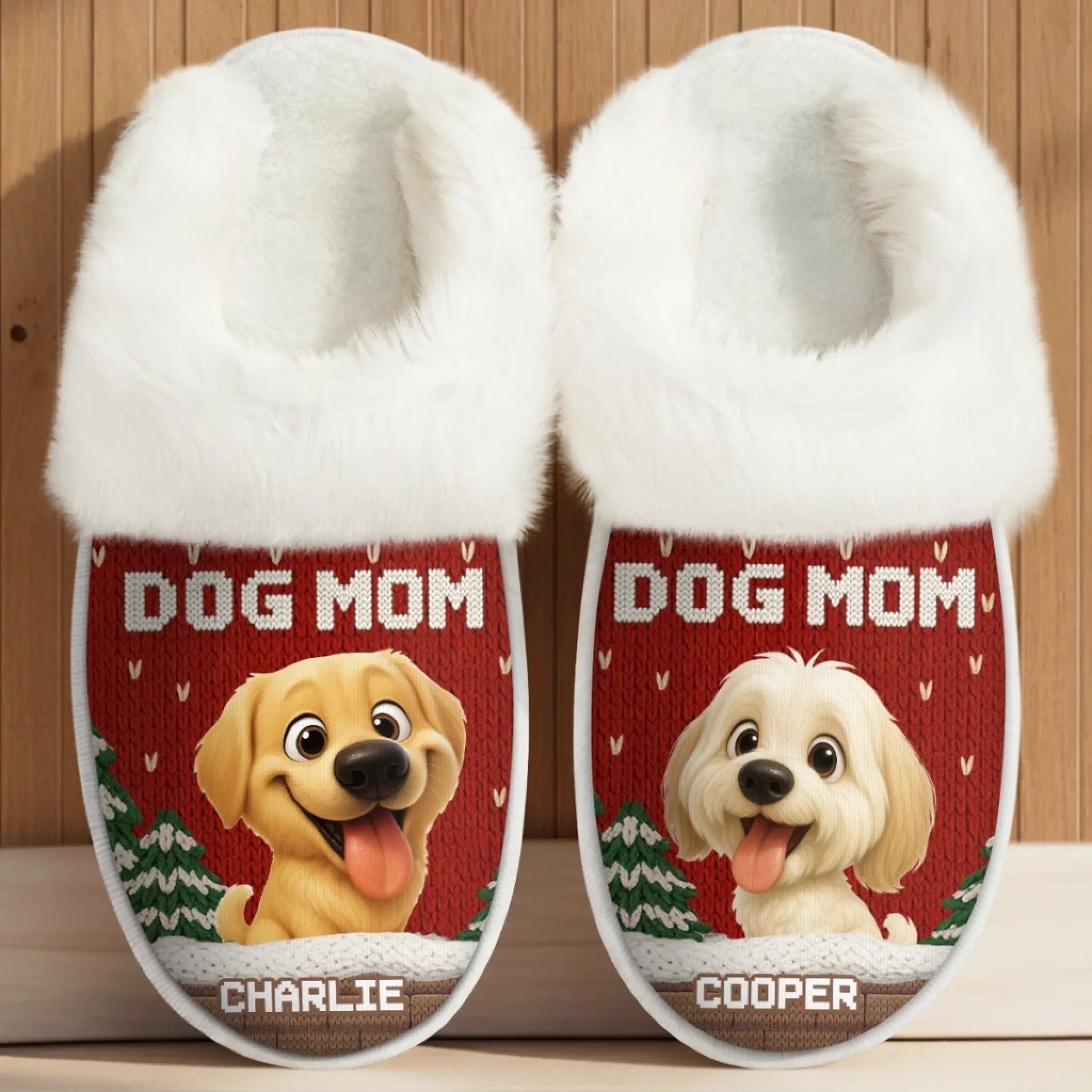 Custom Fluffy Slippers With Fur Lining - Personalized Christmas Birthday Gifts For Dog Cat Lovers, Dog Dad And Mom, Cat Owners - Best Dog Mom Ever