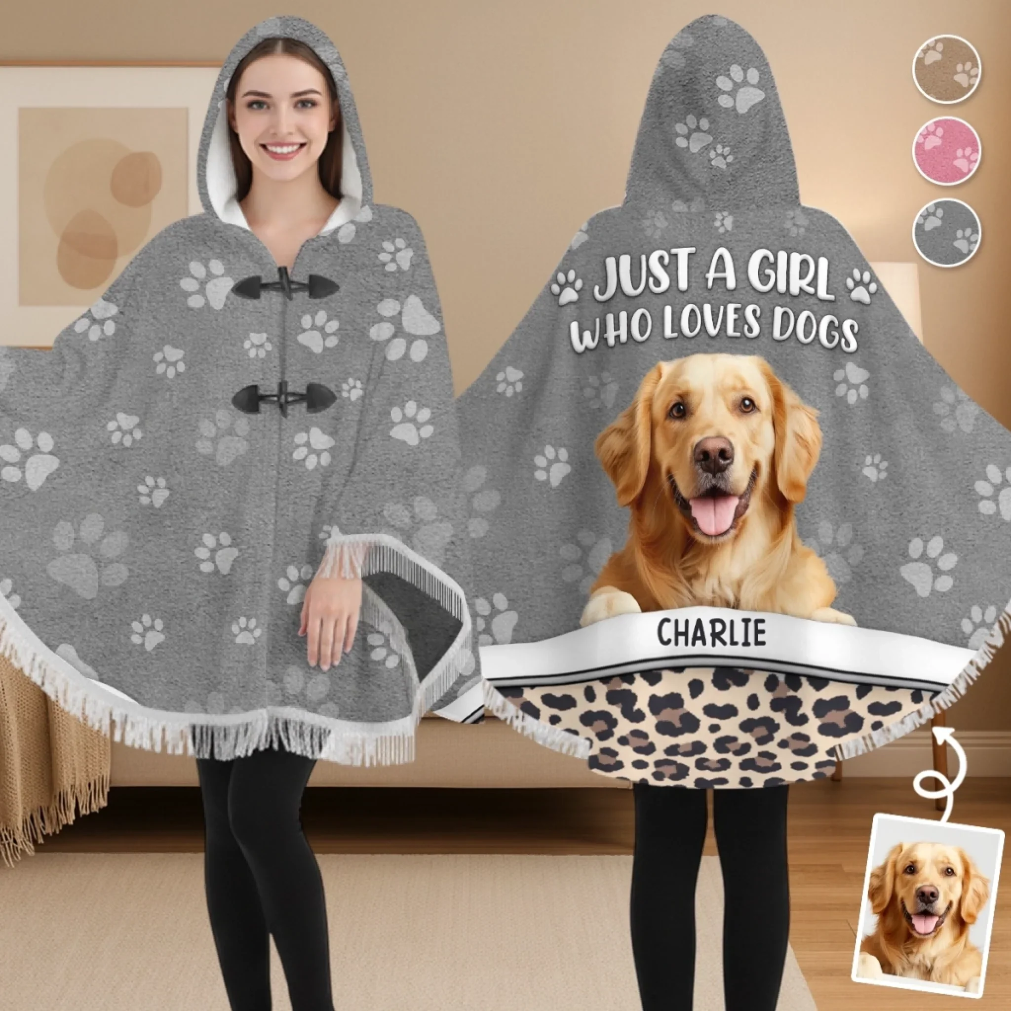 Custom Photo Poncho Wearable Blanket - Personalized Christmas Birthday Gifts For Dog Cat Lovers, Dog Dad And Mom, Cat Owners - Warmth By My Pet