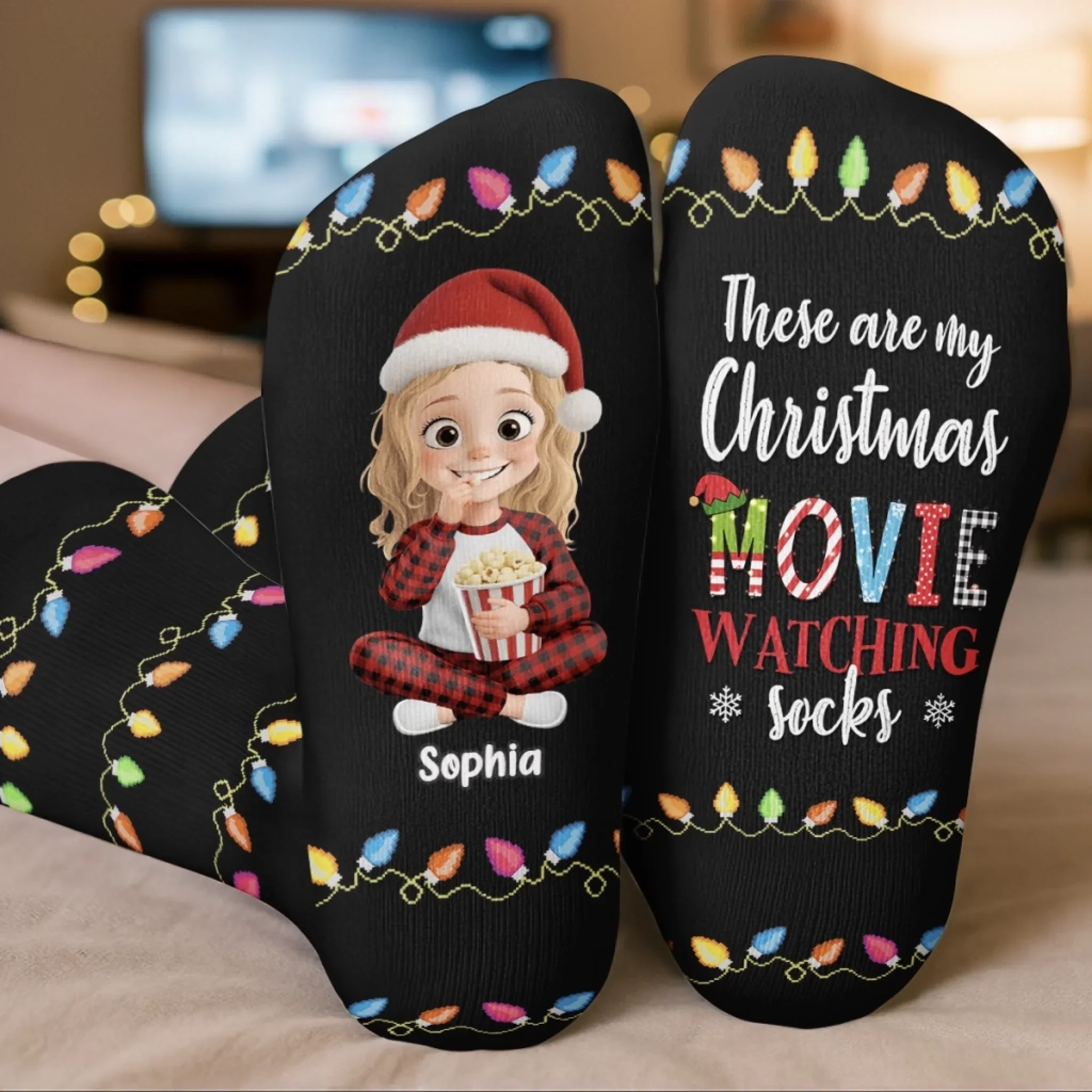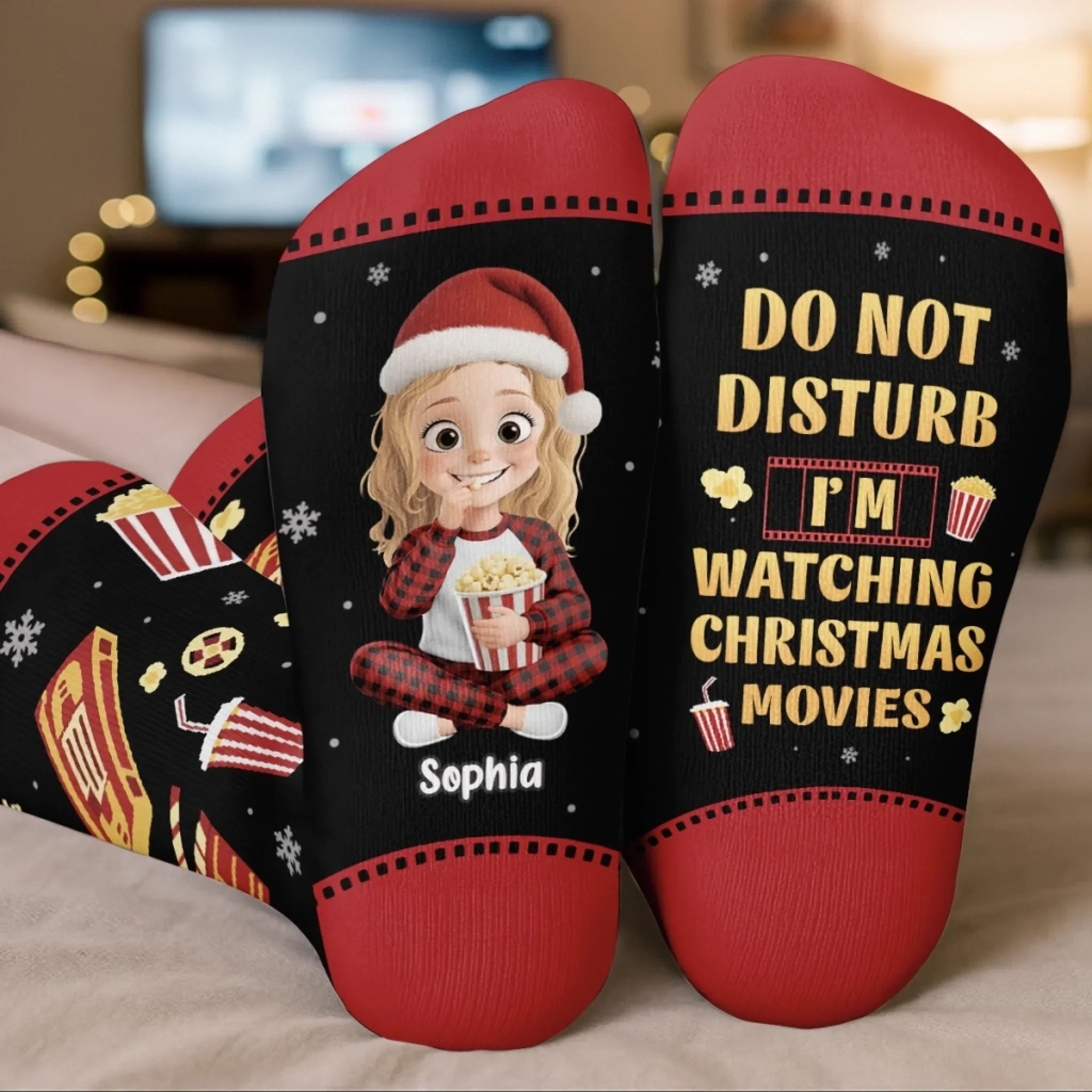 Custom Crew Socks - Personalized Christmas Birthday Gifts For Women, Men - Movie Time, Holiday Edition