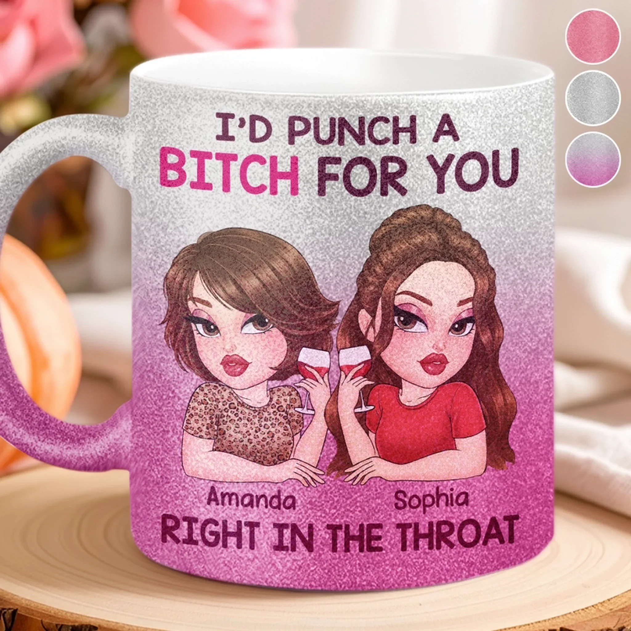 Custom 11OZ Glitter Matte Ceramic Mug - Personalized Best Friend Birthday Gifts For Women, Besties, Sisters, BFF - Besties Bring The Sunshine In