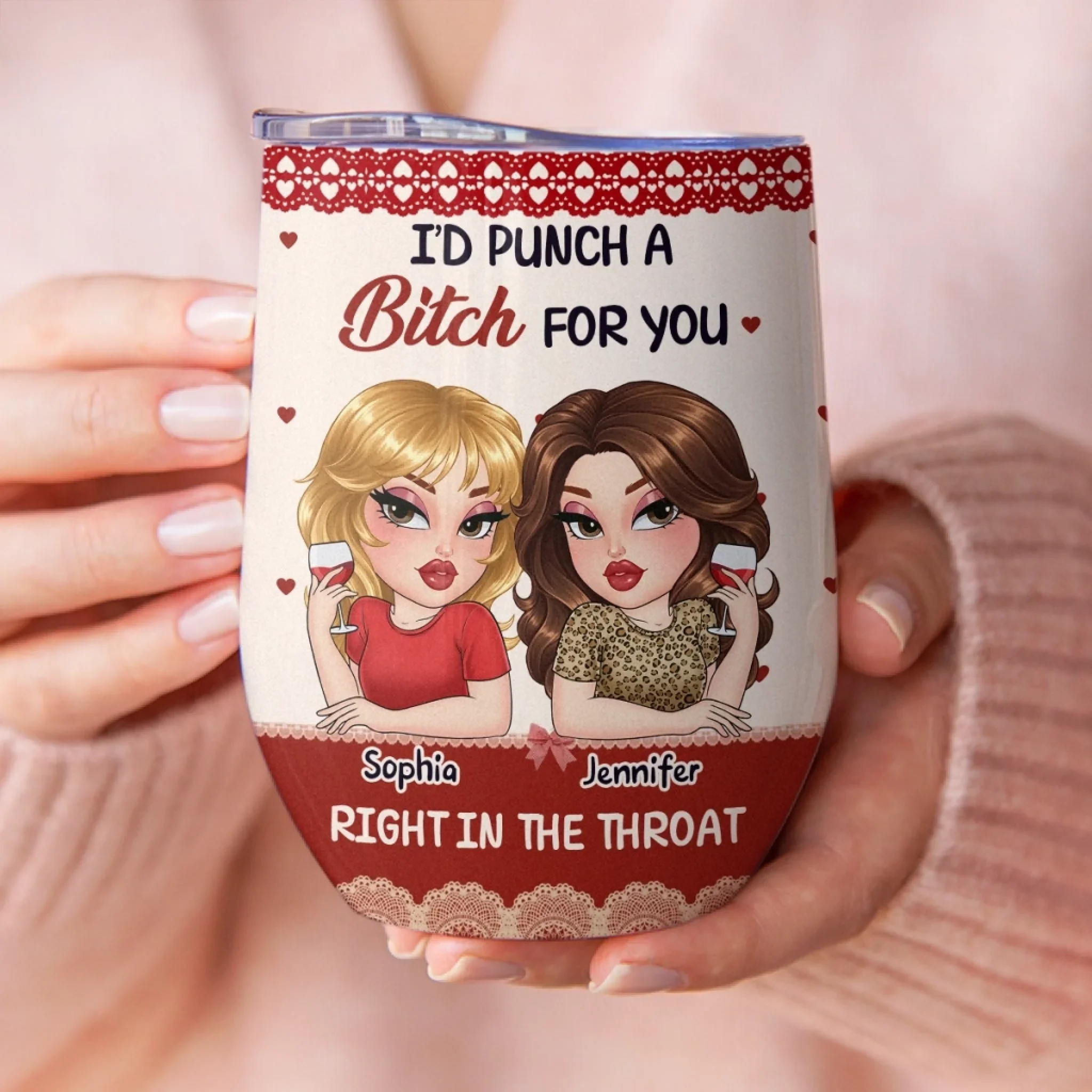 Custom Wine Tumbler - Personalized Best Friend Birthday Gifts For Women, Besties, Sisters, BFF - Forever My Safe Place