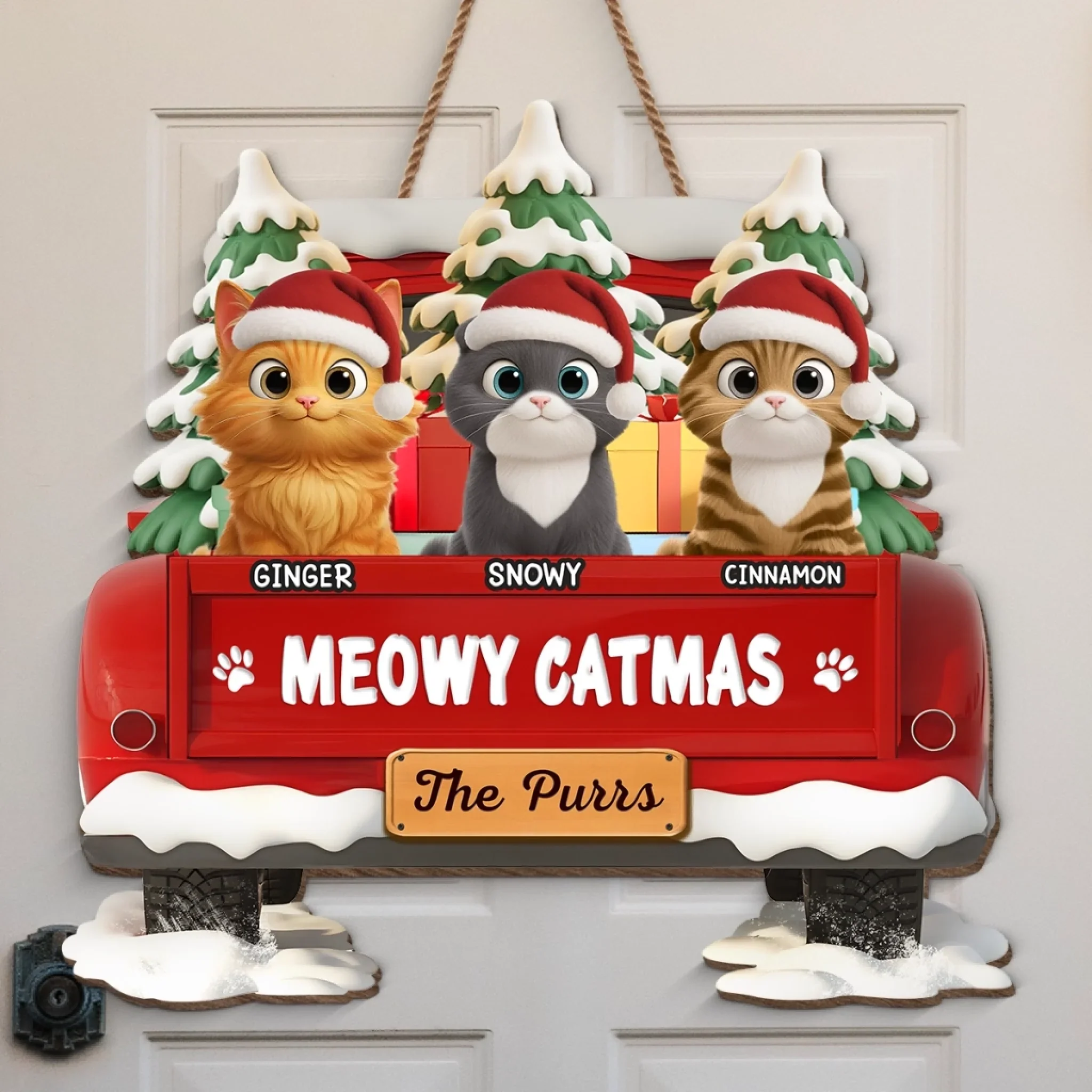 Custom Wood Sign - Personalized Christmas Birthday Gifts For Dog Cat Lovers, Dog Dad And Mom, Cat Owners - Merry Woofmas From Our Pack