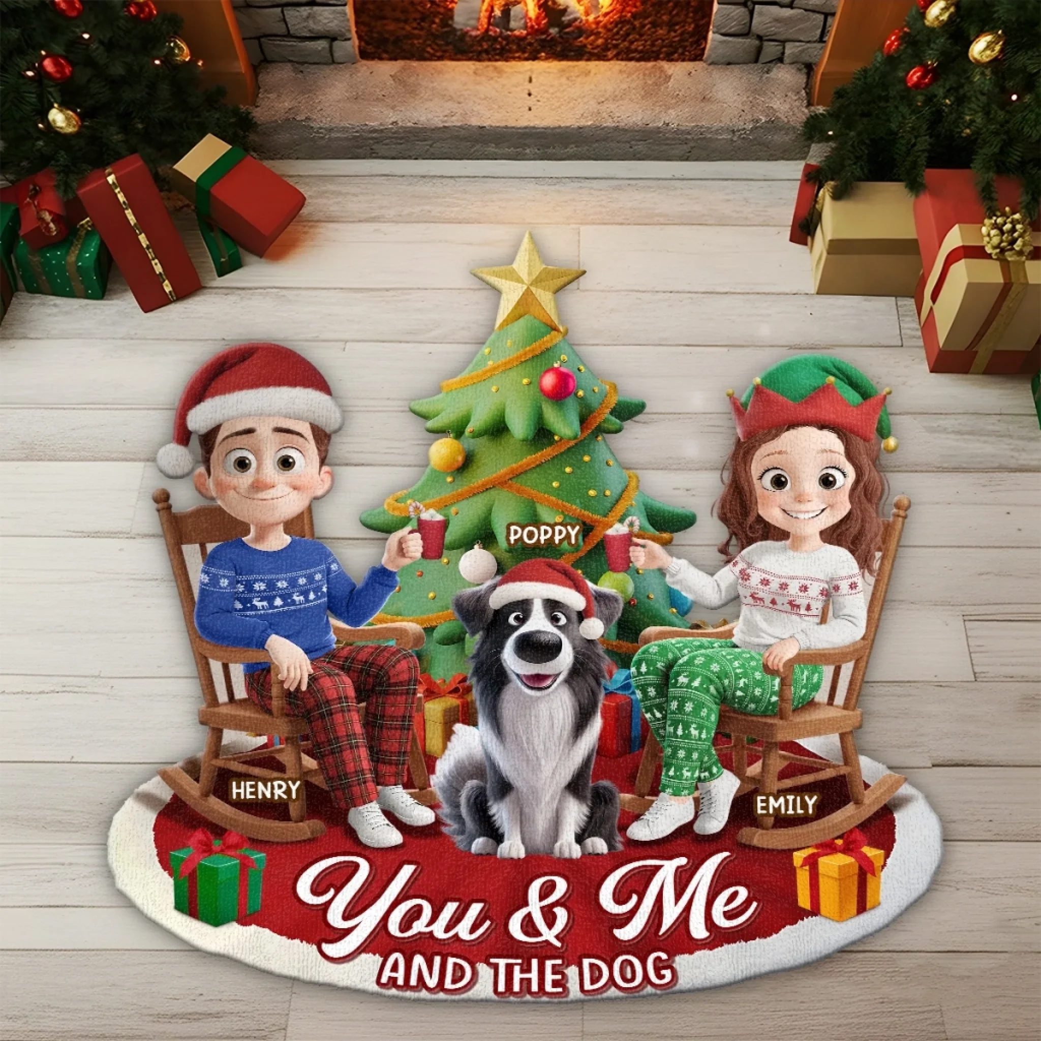 Custom Shaped Doormat - Personalized Anniversary Christmas Wedding Gifts For Husband And Wife, Dog Cat Lovers - Just Us, The Tree And The Dog
