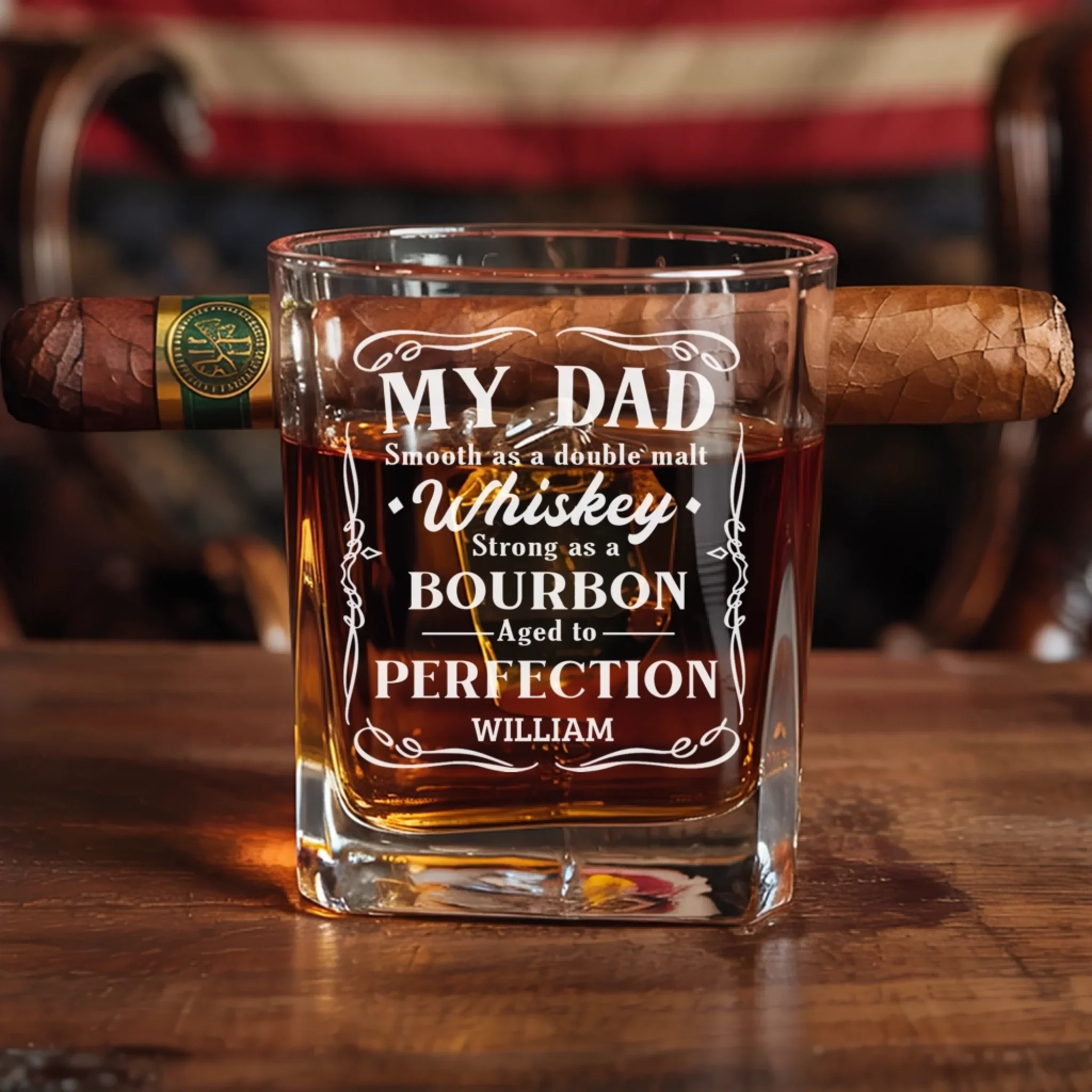 Bourbon s Got Flavor, But Dad s Got Soul - Family Personalized Custom Whiskey Glass With Cigarette Holder - Father's Day, Gift For Dad, Grandpa
