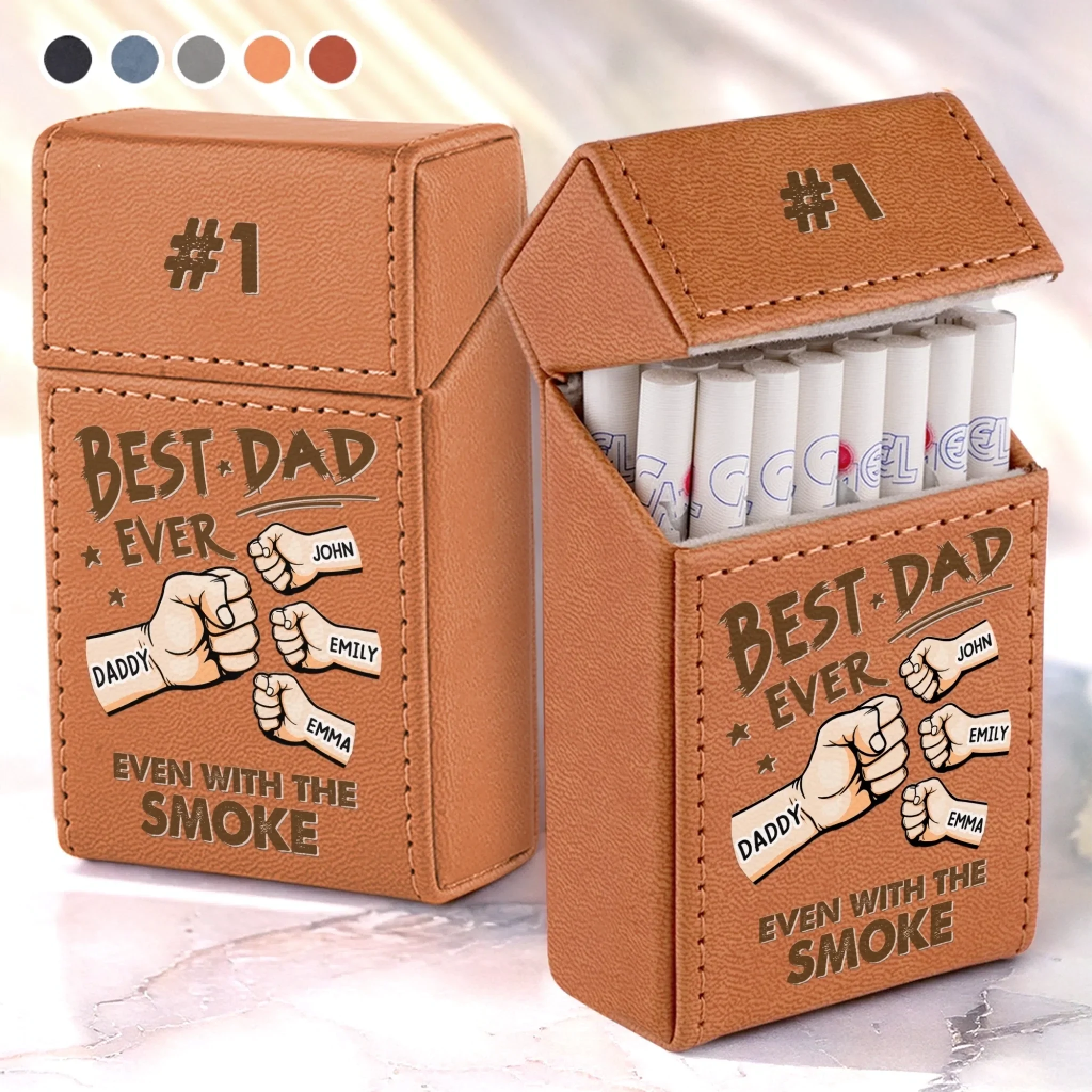 Best Dad Ever - Family Personalized Custom Leather Cigarette Case - Father's Day, Gift For Dad, Grandpa