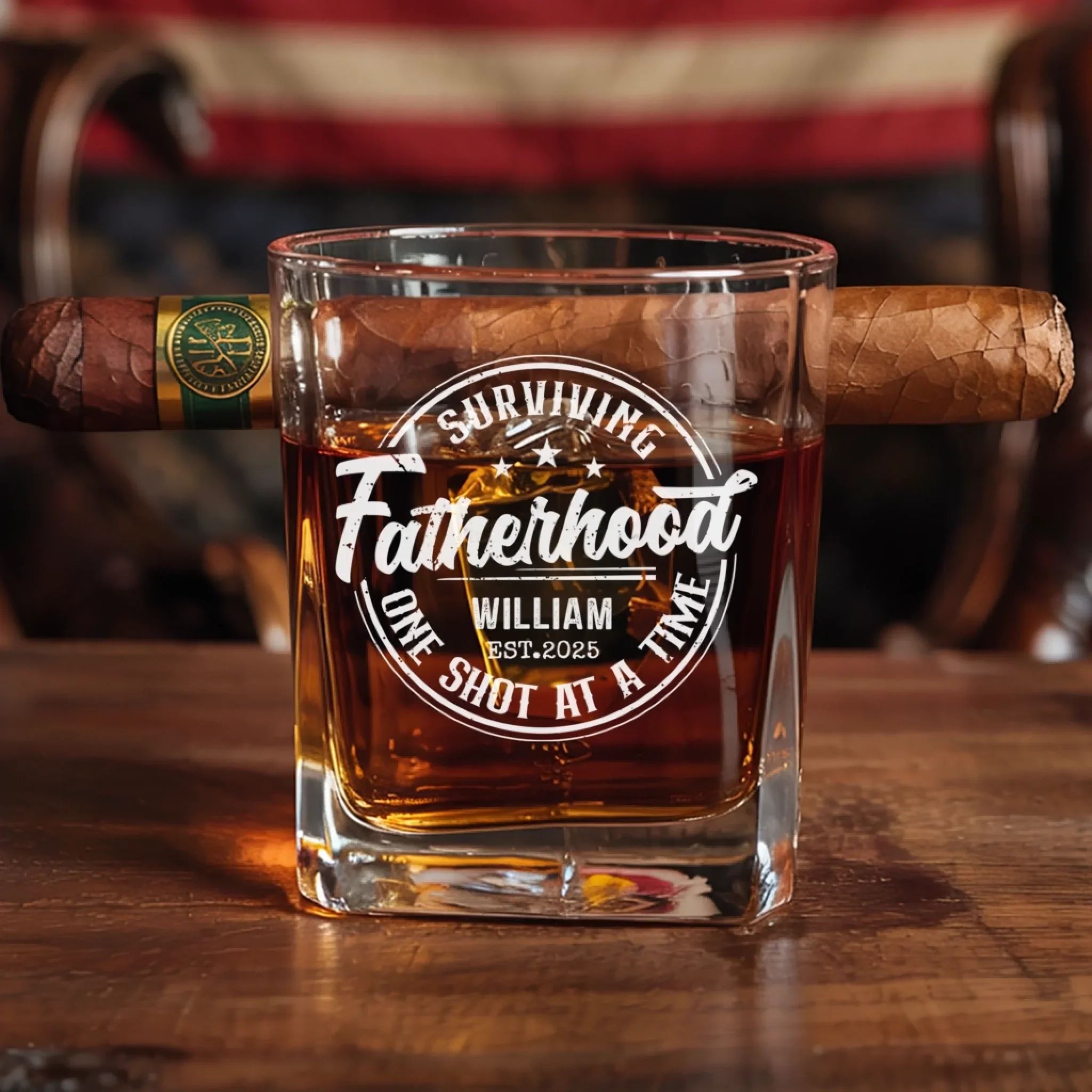 You Age Like Fine Whiskey - Family Personalized Custom Whiskey Glass With Cigarette Holder - Father's Day, Gift For Dad, Grandpa