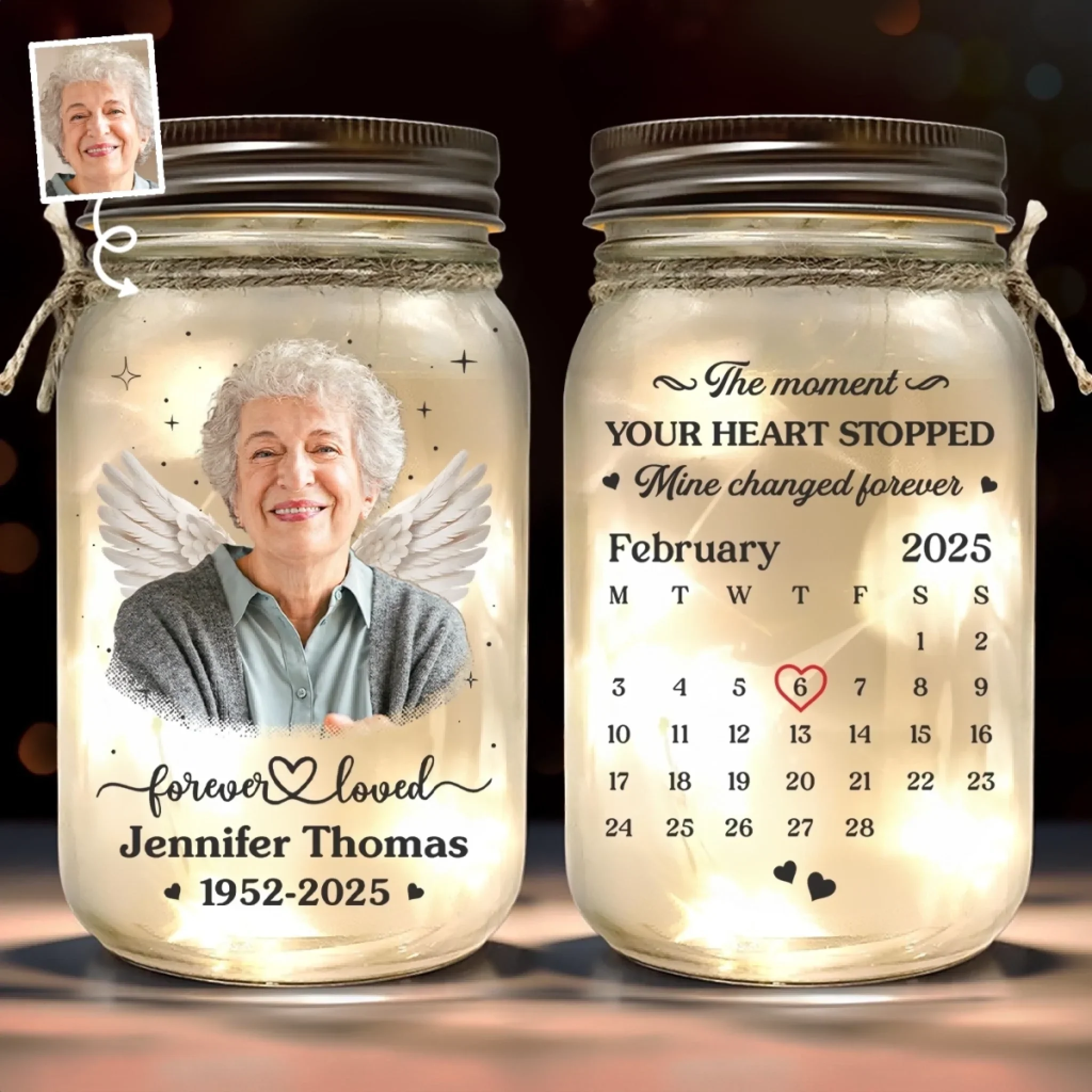 Custom Photo Mason Jar Light - Personalized Memorial Sympathy Gifts For Loss Of Mom, Dad - Your Memory Lives With Us