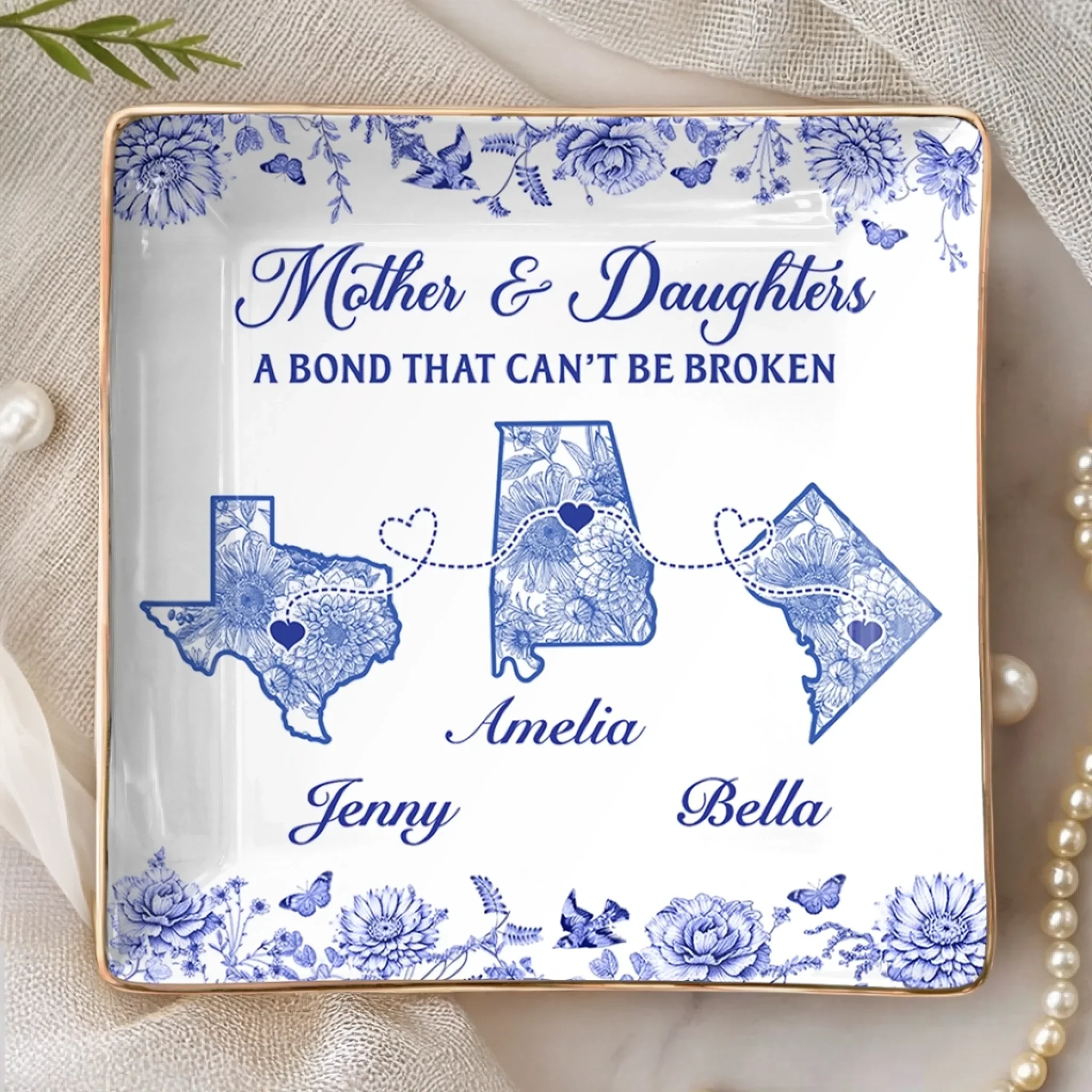 Custom Long Distance Full-Print Jewelry Dish - Personalized Birthday Gifts For Mom, Daughter - No Distance Between Hearts