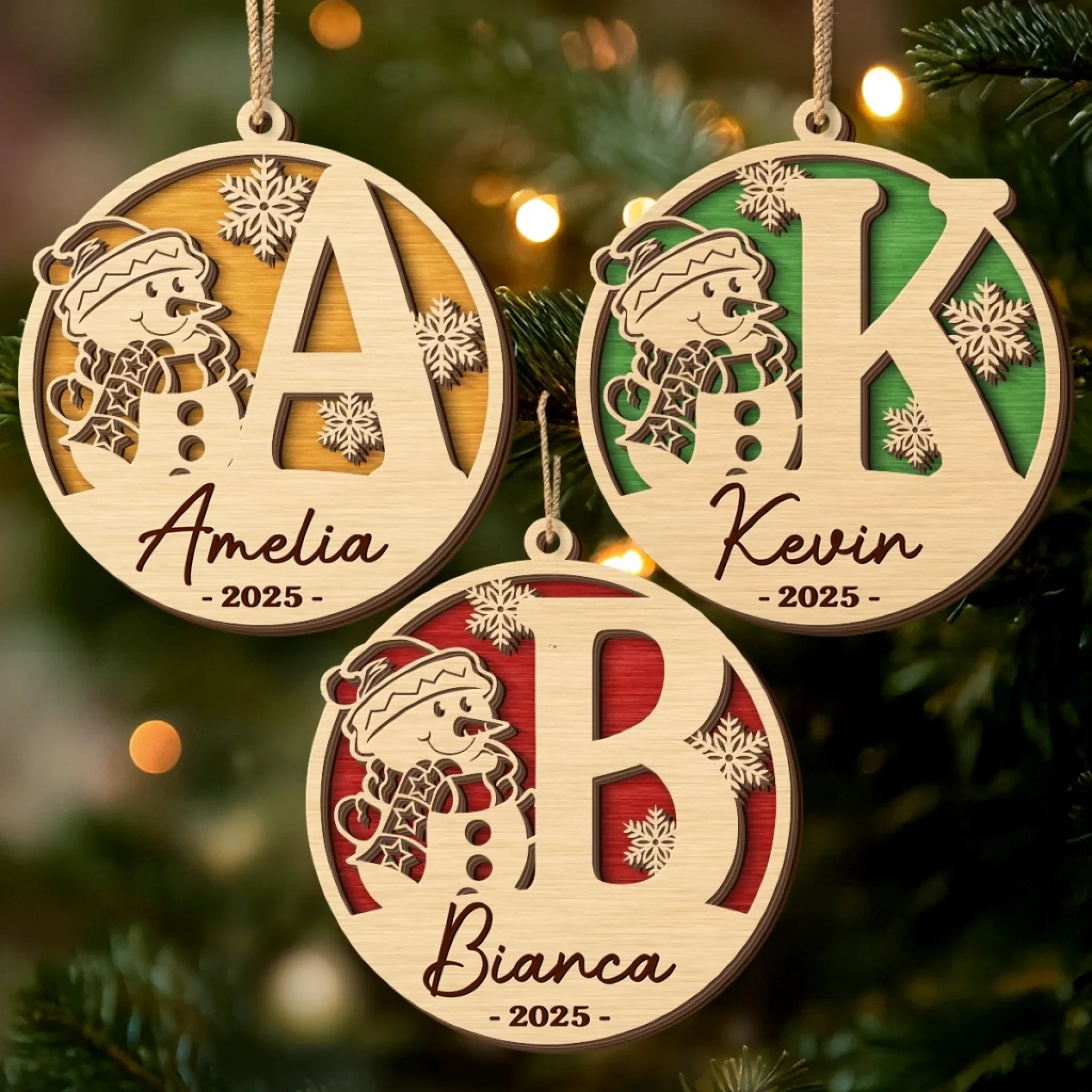 Custom Snowman Double Layer Wooden Ornament - Personalized Christmas Birthday Gifts For Mom, Dad, Brother, Sister, Kids - Family Moments Warm The Heart