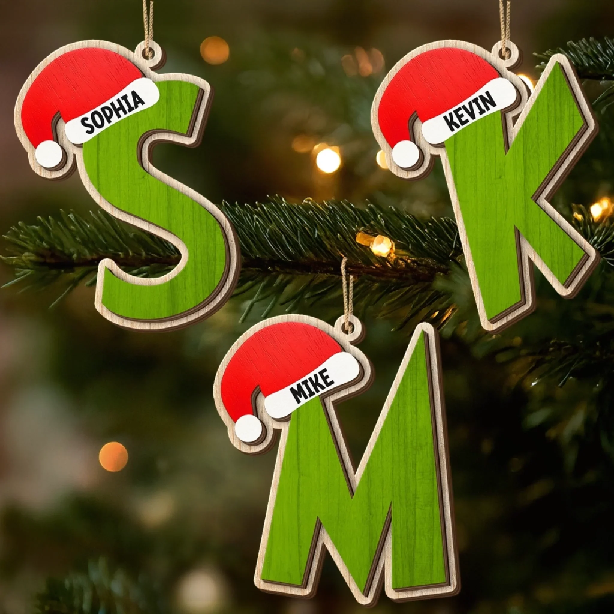 Custom Pine Tree Letter Wooden Ornament - Personalized Christmas Birthday Gifts For Mom, Dad, Brother, Sister, Kids - Evergreen Souls