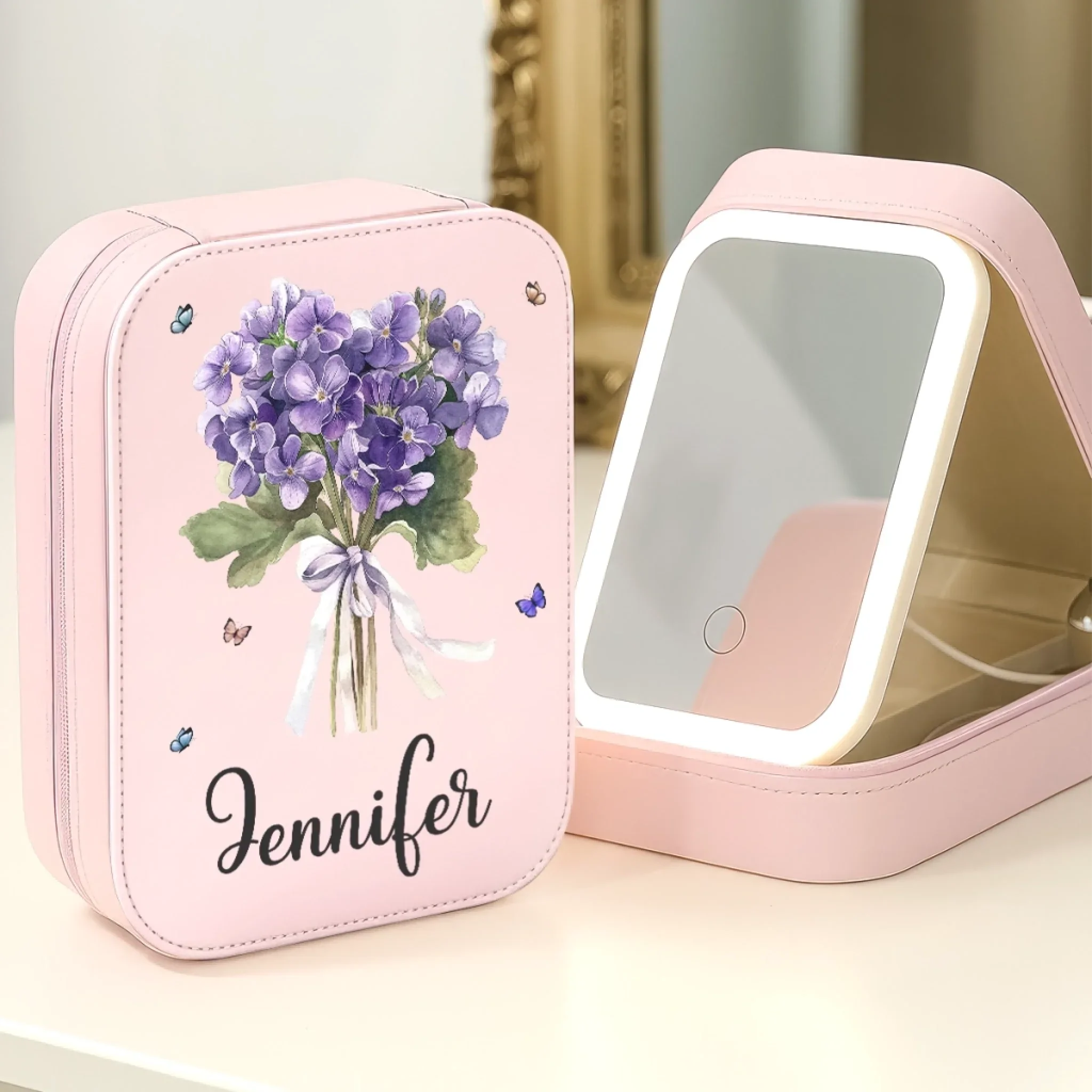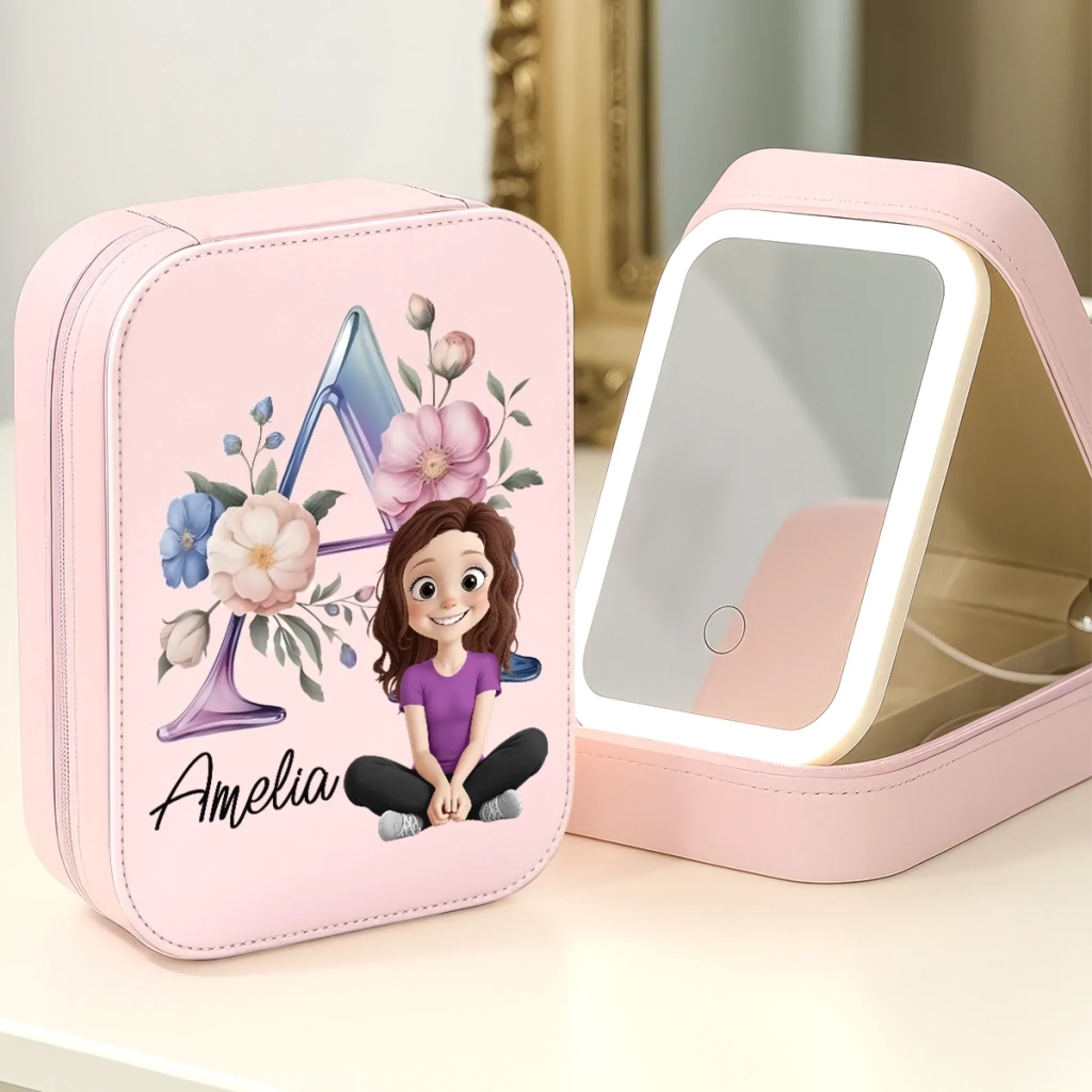 Custom Jewelry Box LED Makeup - Personalized Birthday Gifts For Besties, Sisters, BFF, Family, Yourself - Growing Through Every Little Moment